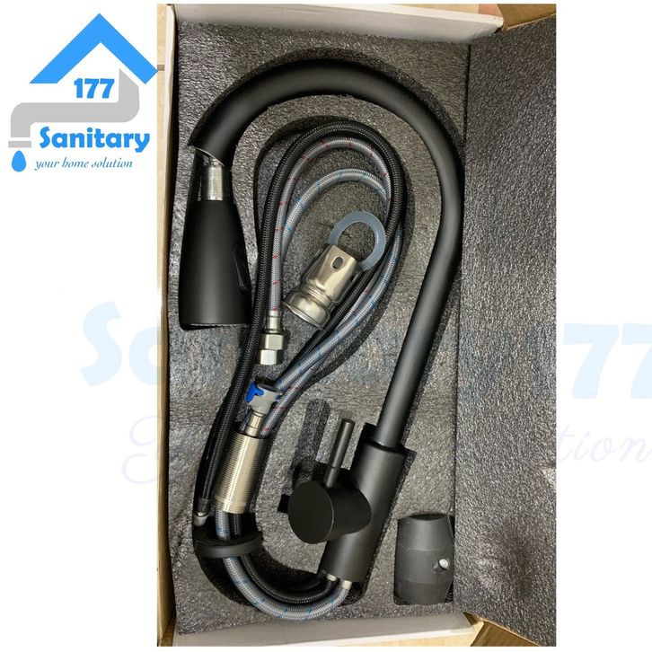 KRAN SINK TARIK PANAS DINGIN STAINLESS 304 HITAM 15BL-KERAN AIR CUCI PIRING BLACK MATTE WASTAFEL FLEKSIBEL /G26