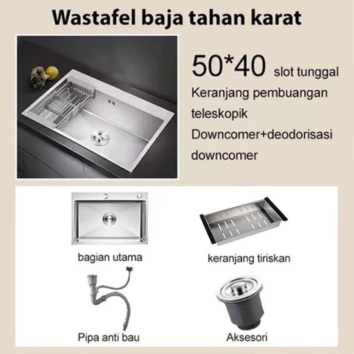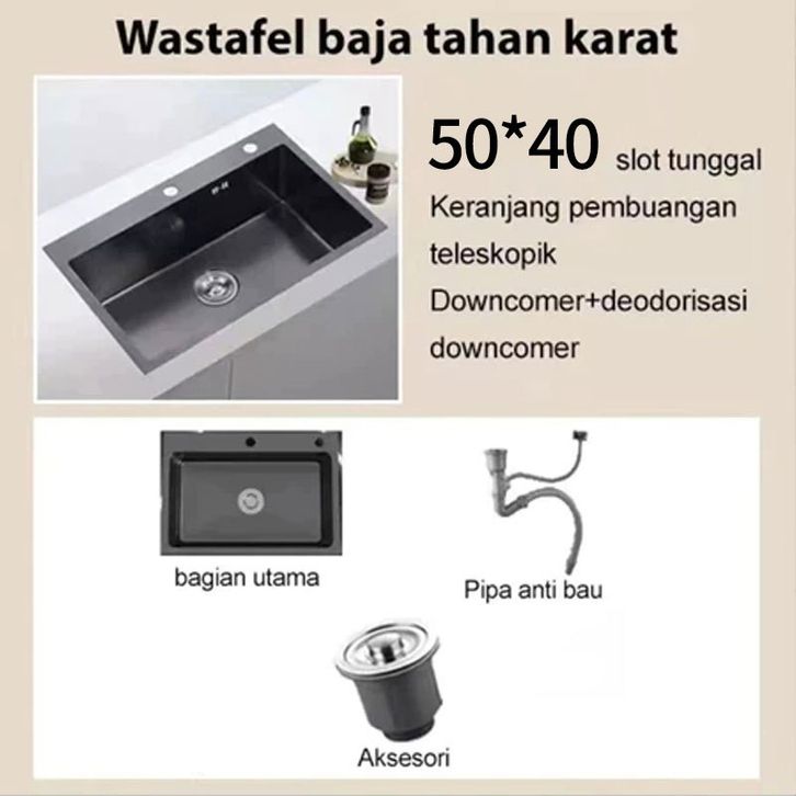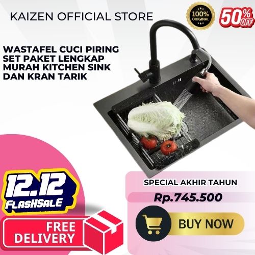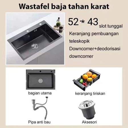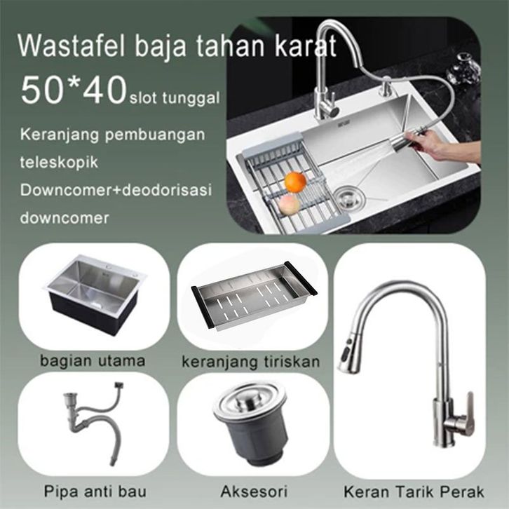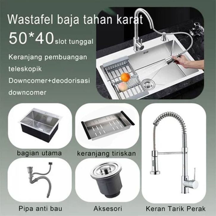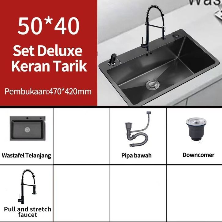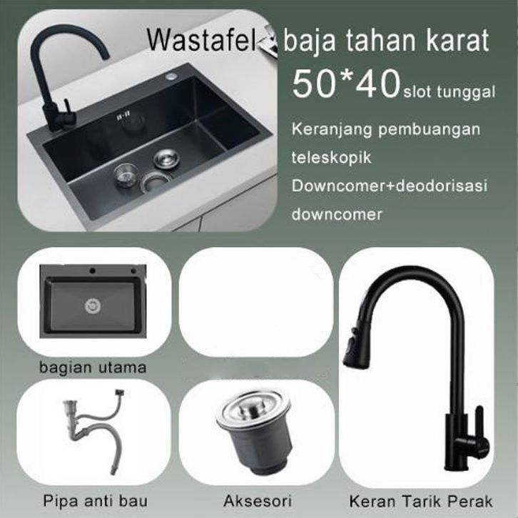 [Star]Wastafel Cuci Piring Set Paket Lengkap Murah Kitchen Sink Dan Kran Tarik Hitam Wastafel Cuci Piring Stainless