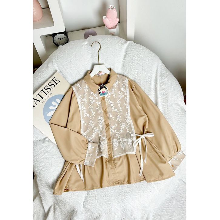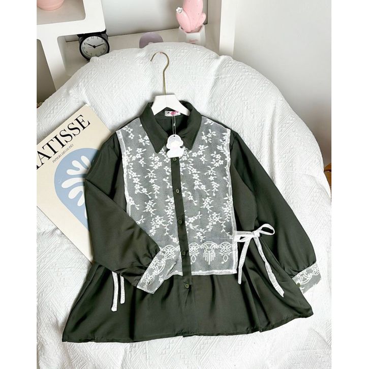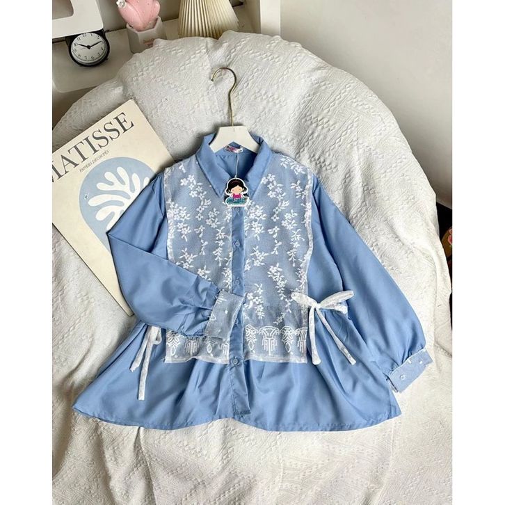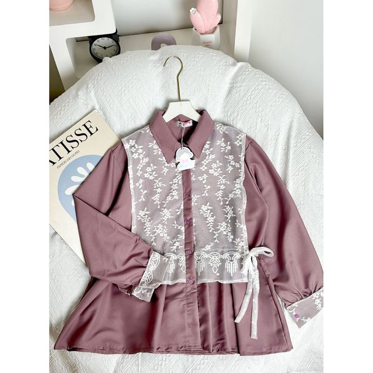 BRUKAT TOP KEKINIAN SOLYA Kemeja wanita Arumi Blouse atasan wanita Korean Style premium Blouse Salur kombinasi brukat