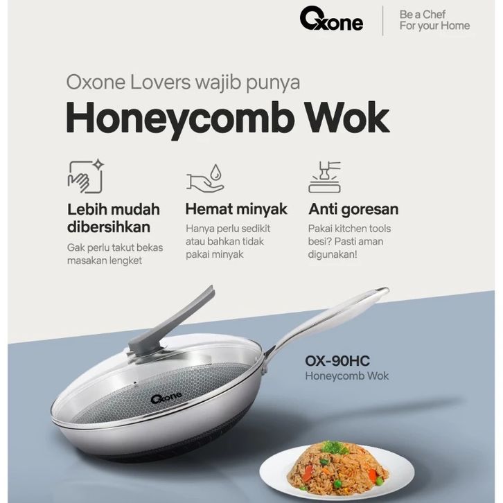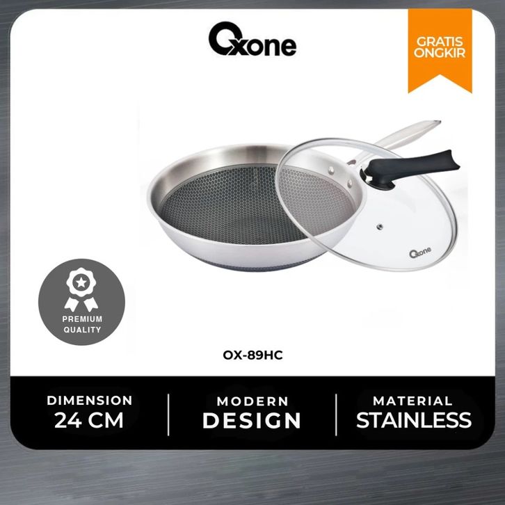 Oxone Wajan Fry Pan Honey Comb Anti Lengket 24cm 30 cm Stainless Steel OX89HC OX90HC
