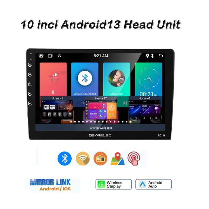 Head Unit Double Din Universal GEARELEC Android13 10inci Support GPS/Youtube/WIFI/48 Tema
