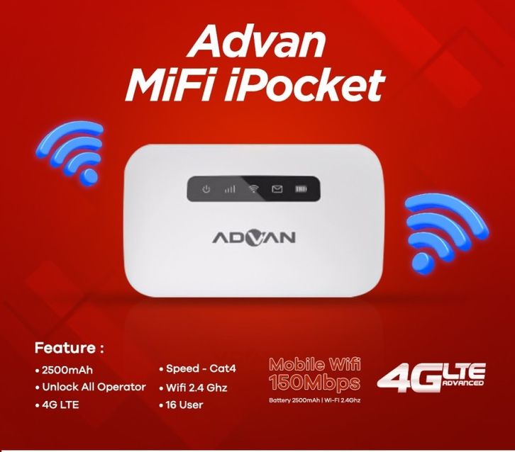 Advan Modem MiFi Pocket 4G LTE Mobile Wifi 150 Mbps Garansi Resmi