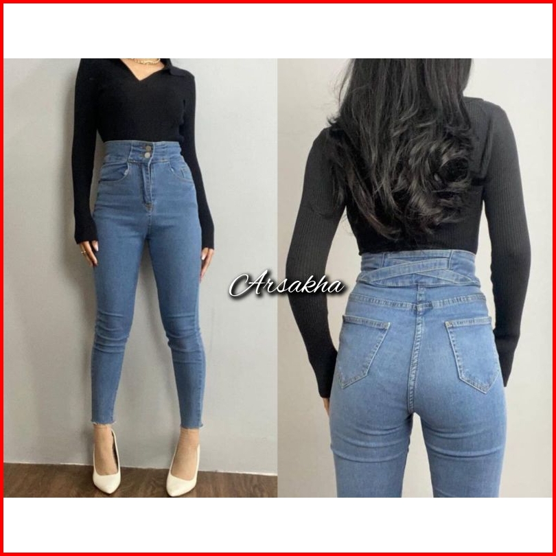 Celana Panjang Highwaist Wanita Jeans Premium Jeans Wanita Polos Celana Skinny Hw Jeans Ketat Celana Pensil Silang Jins