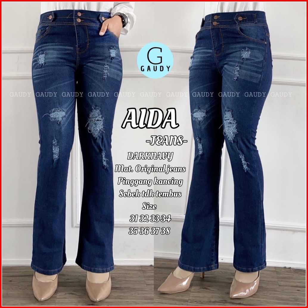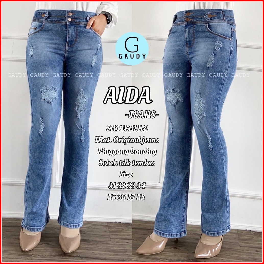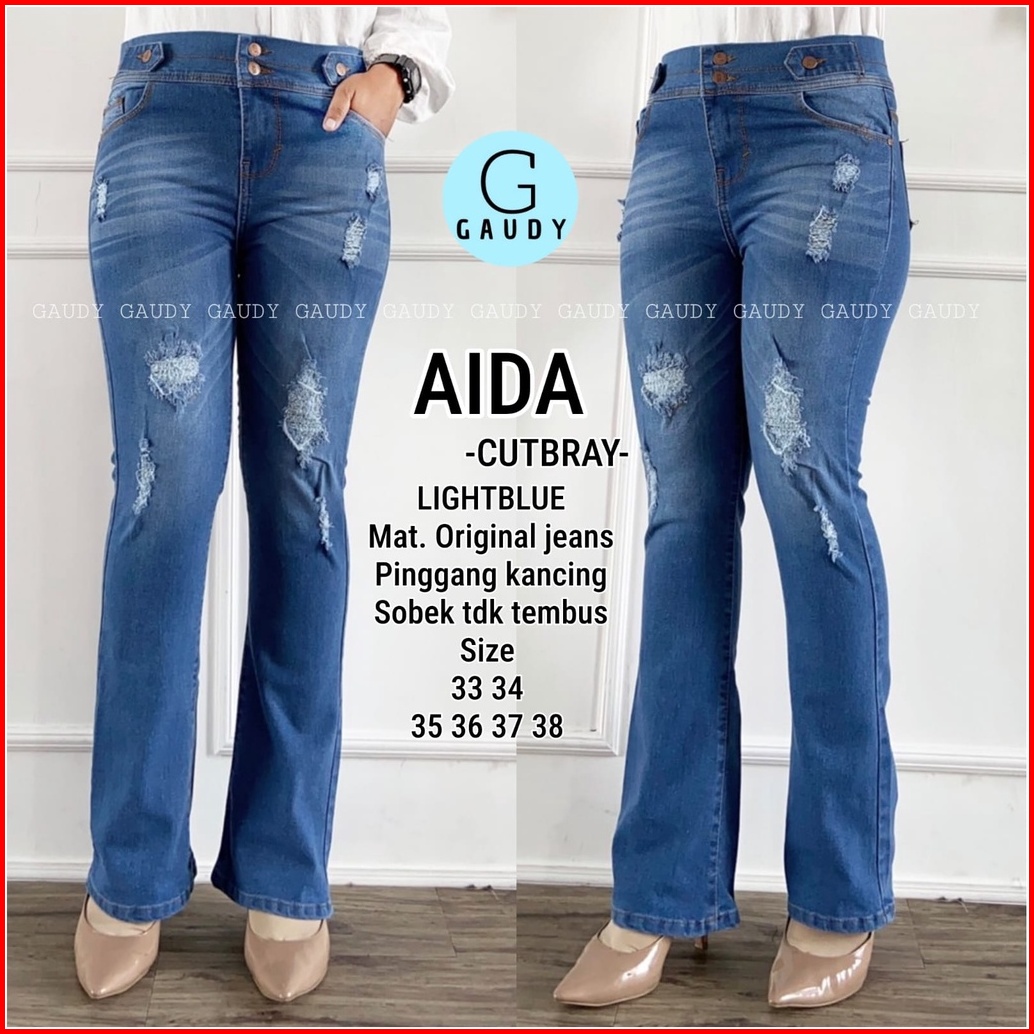 Aida Celana Highwaist Cutbray Jeans Wanita Dewasa Remaja Model Terbaru Kekinian Sobek-sobek Terlaris Jumbo