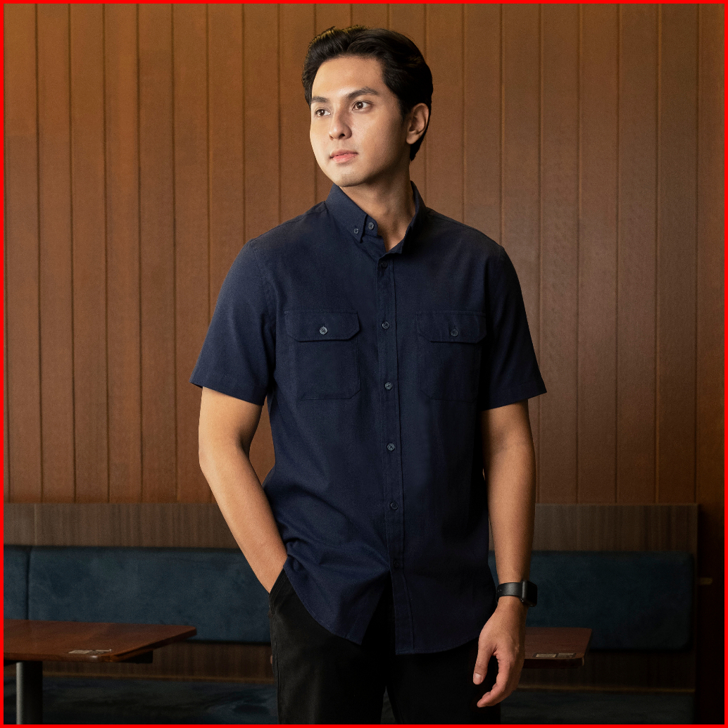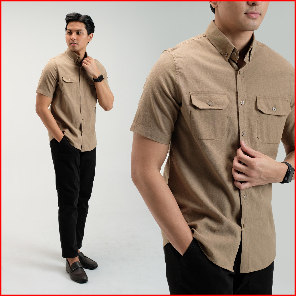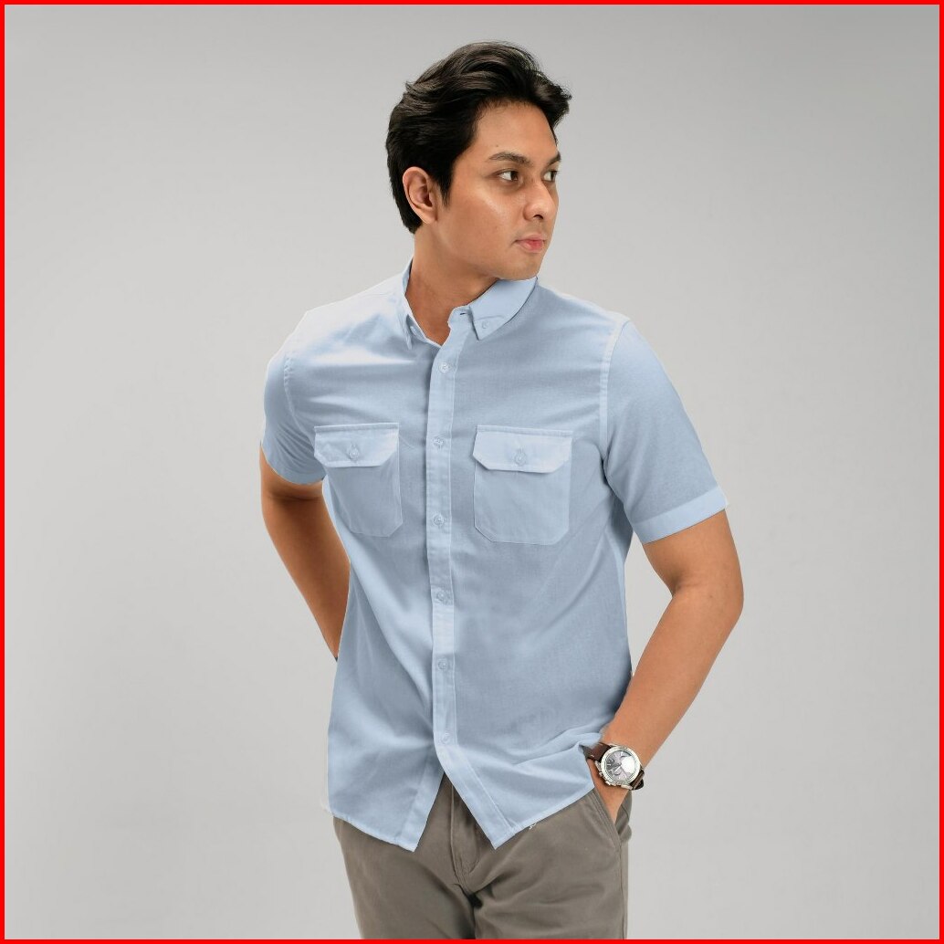Cutoff Denzel Workshirt Kemeja Kerja Polos Pria Pendek