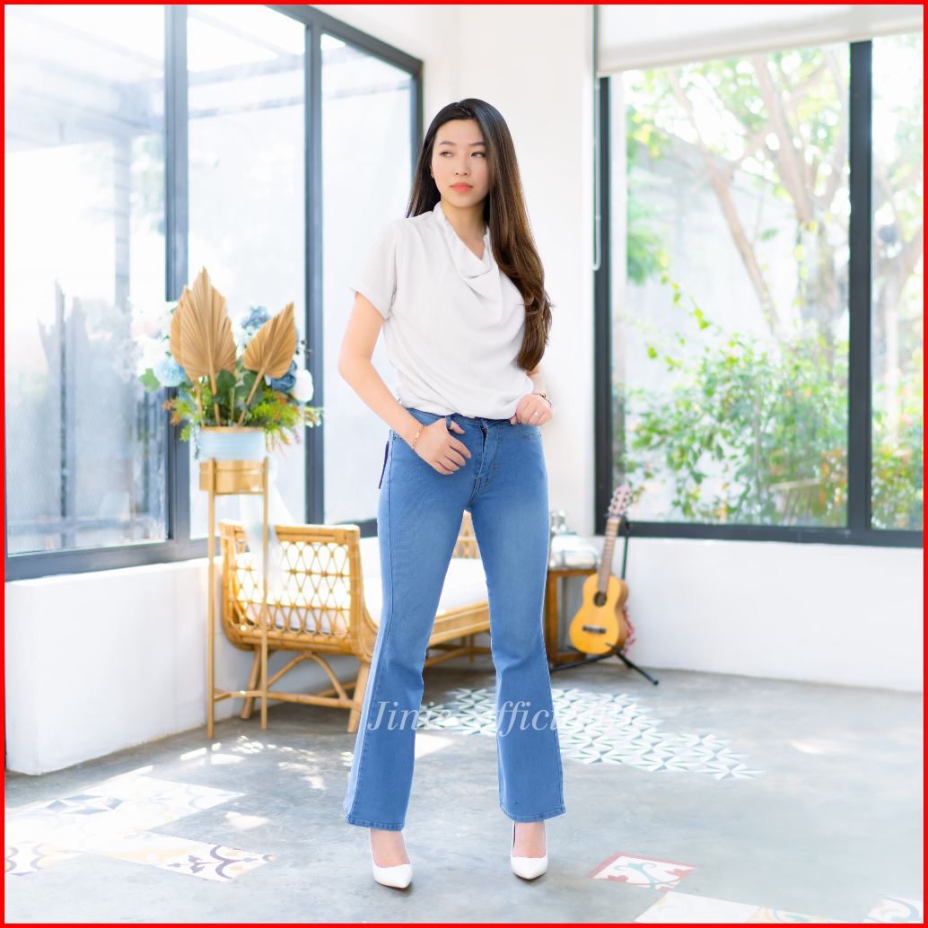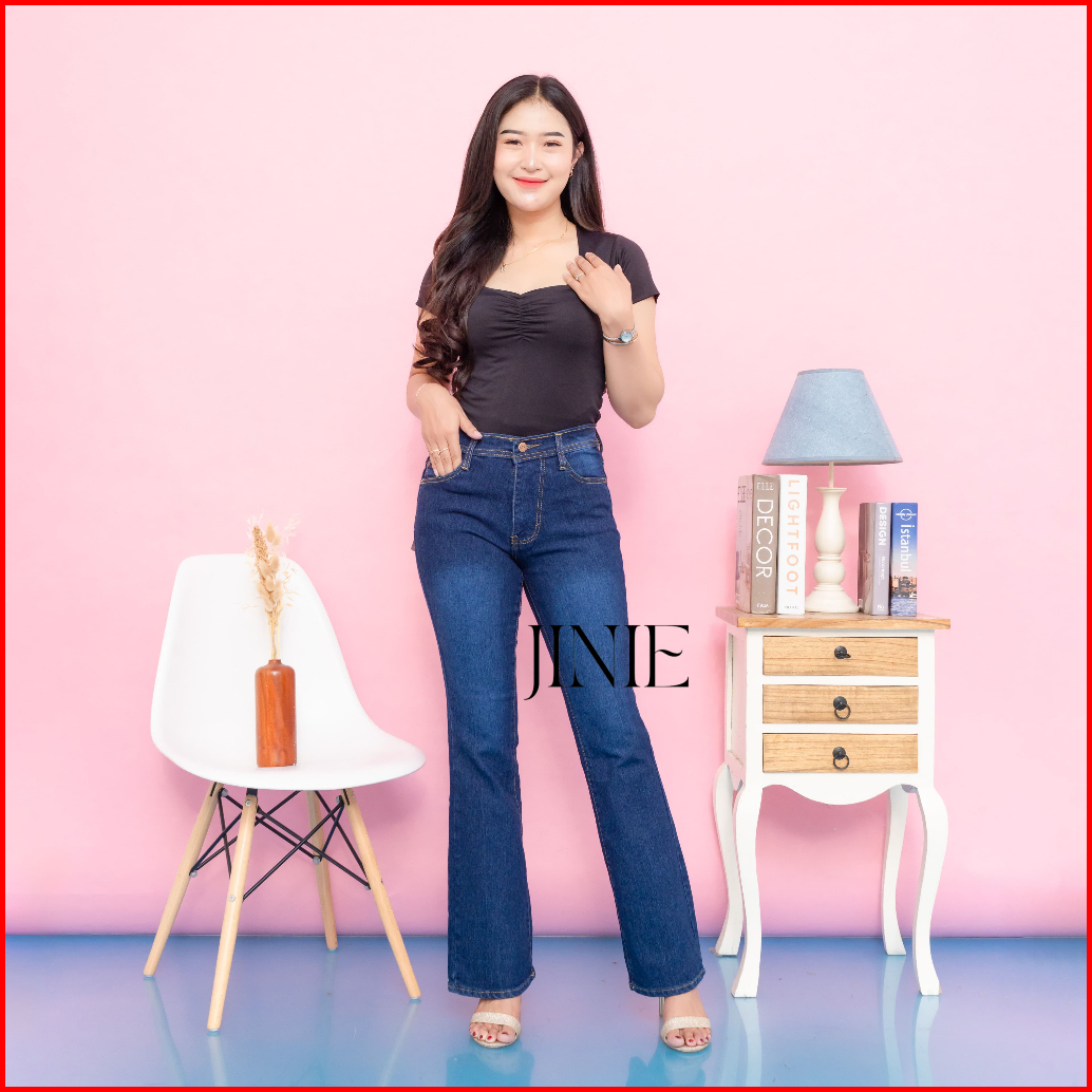 Celana Cutbray Jeans Wanita Jumbo Celana Jeans Wanita Cutbray Ziper Waist Bige Size