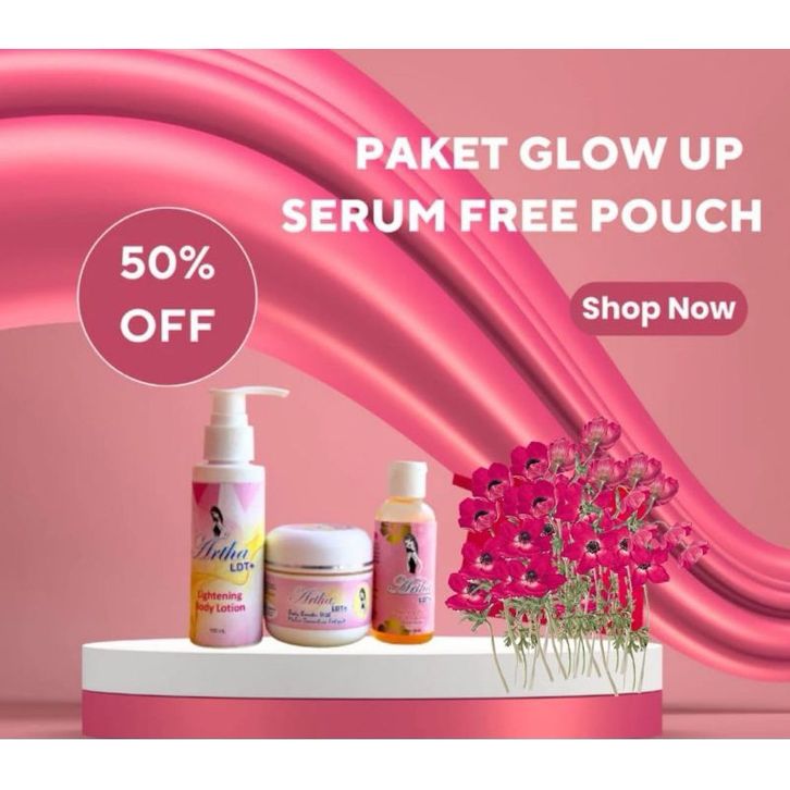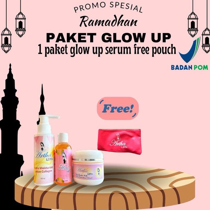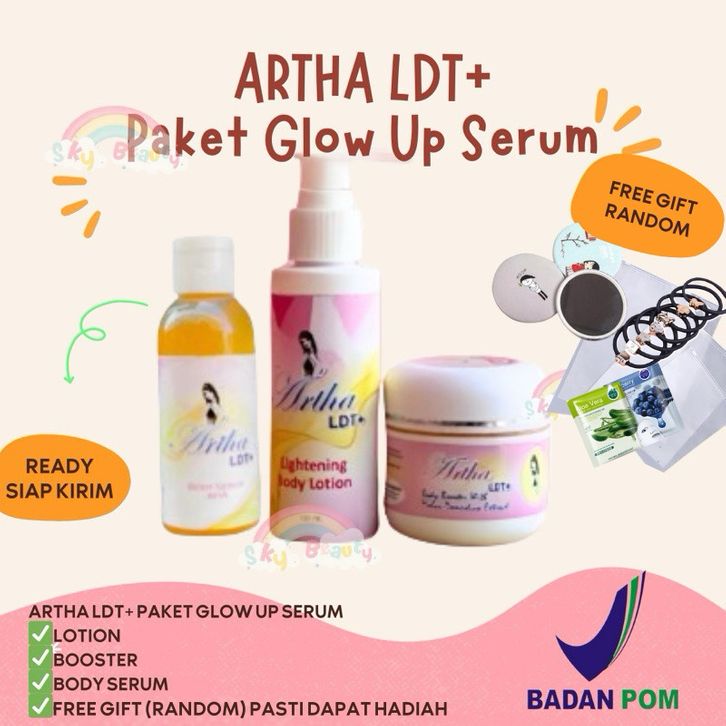 ARTHA LDT PAKET GLOW UP SERUM AHA FREE POUCH LOTION 1 BOOSTER 1 SERUM 1 ORIGINAL TERMURAH