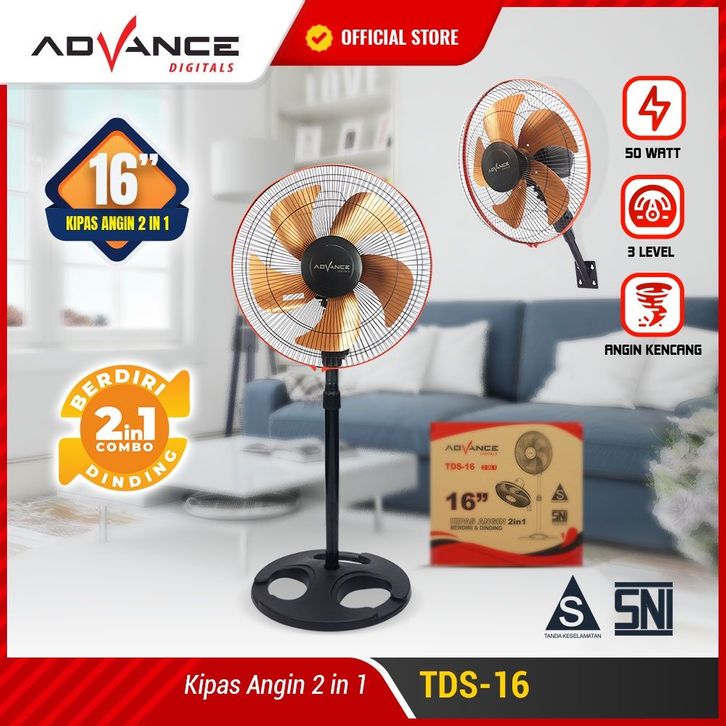 Kipas Angin Dinding Berdiri Ready Stock Advance 2in1 Stand/Desk/Wall TDS-16 Garansi Resmi 1 Tahun Tornado