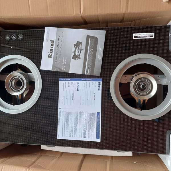 Kompor Rinnai 2 Tungku RI 712GA B/W Api Besar Tempered Glass