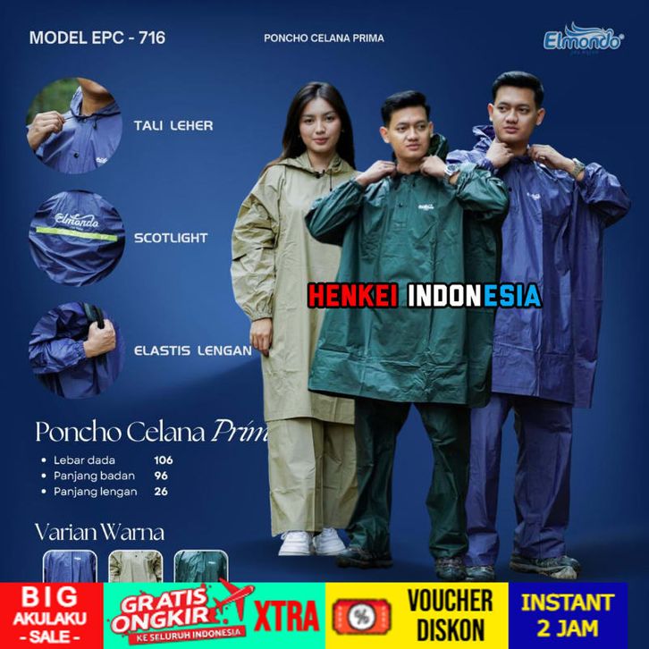 GRATIS ONGKIR Jas Hujan Ponco Elmondo Prima - Mantel Ujan Dewasa Pria dan Wanita TERLARIS