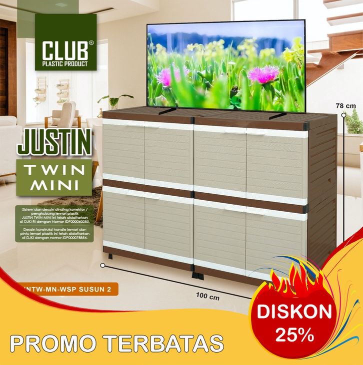 Lemari Pakaian / Lemari Plastik Susun / Rak TV Club Minimalis Serbaguna Susun Justin Twin Mini Club - 2 Susun - 3 Susun