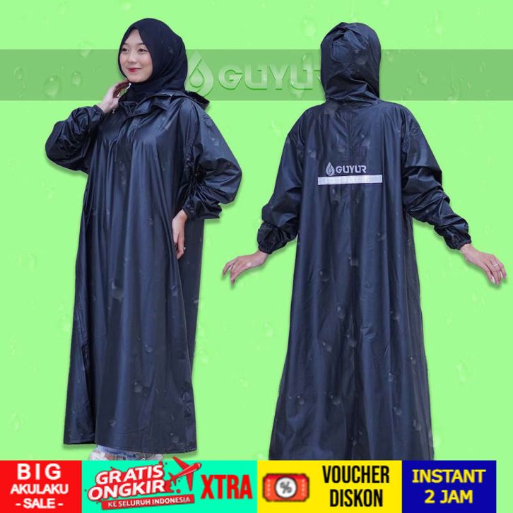 GRATIS ONGKIR jas hujan jumbo big raincoat wanita muslimah hijab model gamis terusan rok syar'i bahan impor
