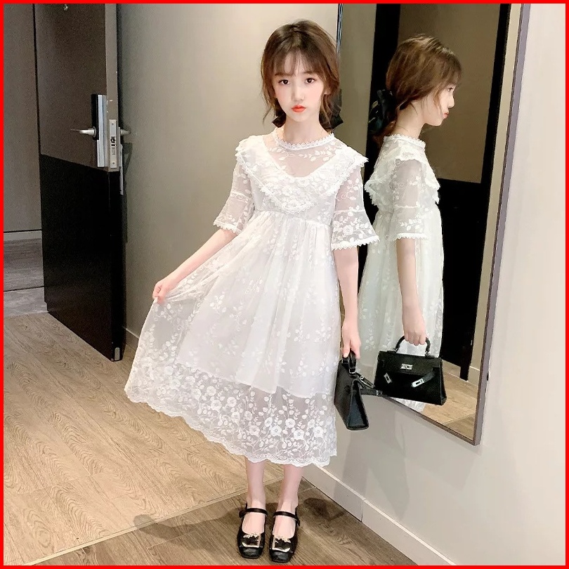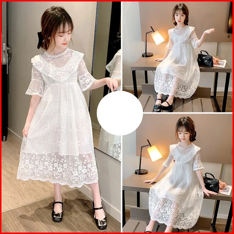 Kinta Dress Dress Anak Perempuan Import Dress Pesta Putih Brukat Anak Dress Anak Lengan Pendek