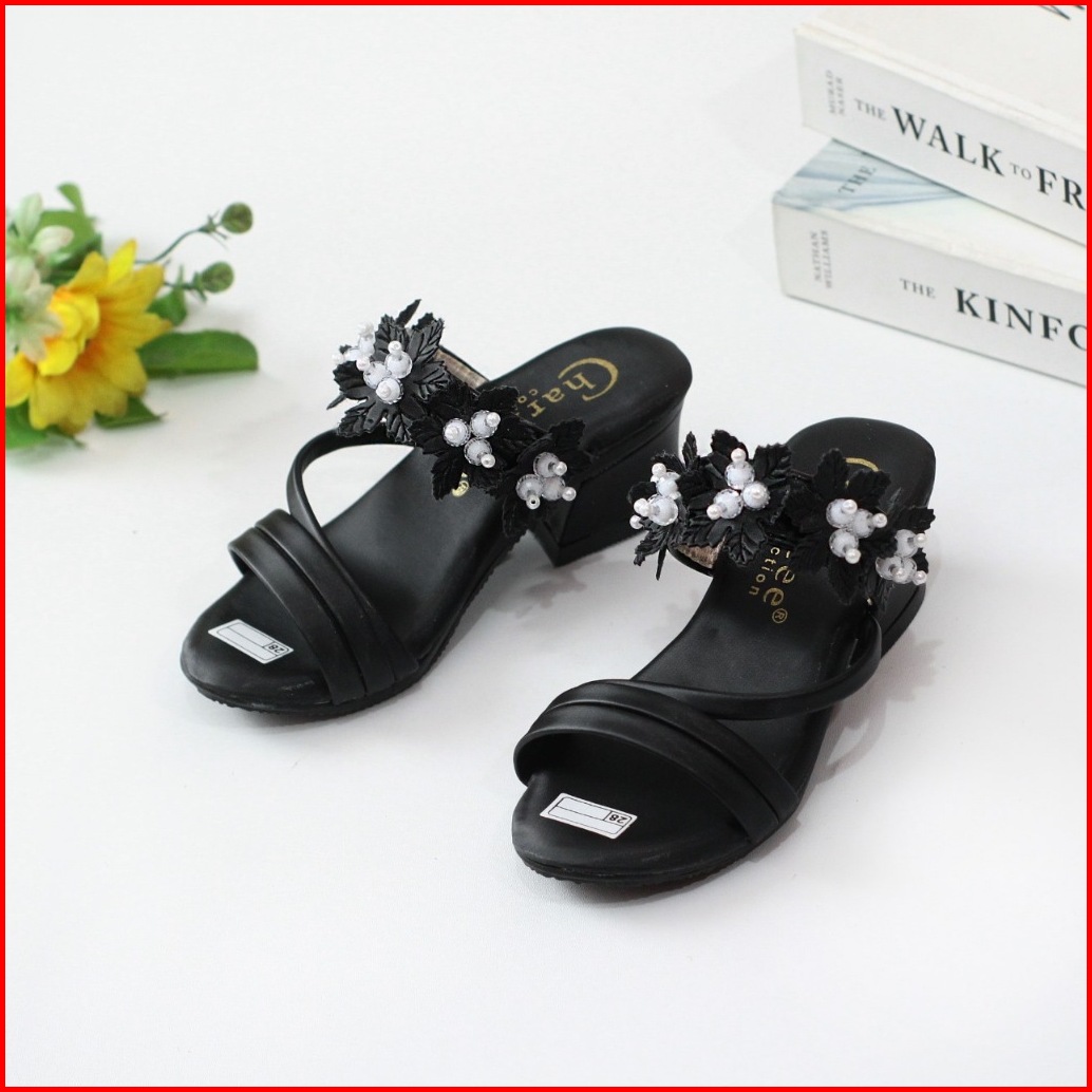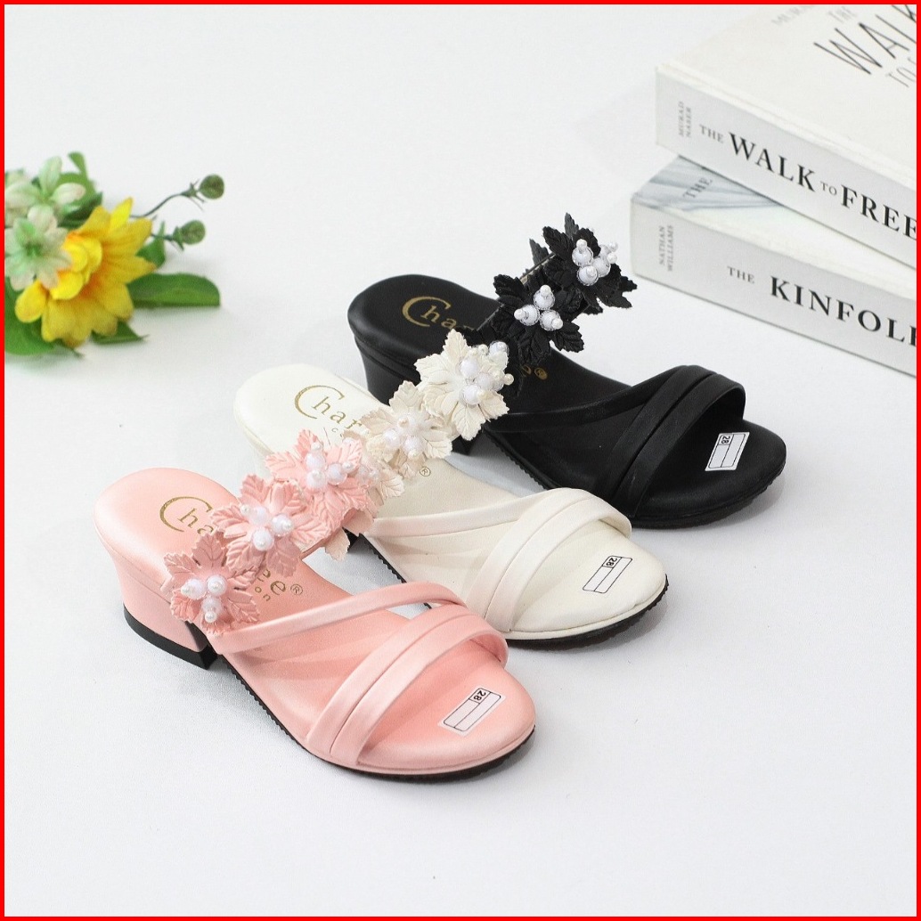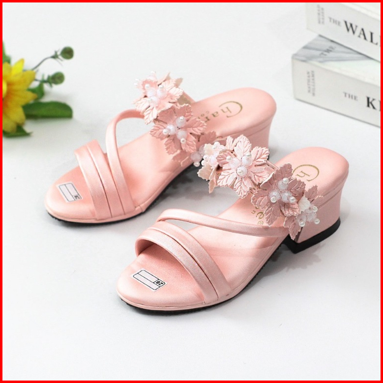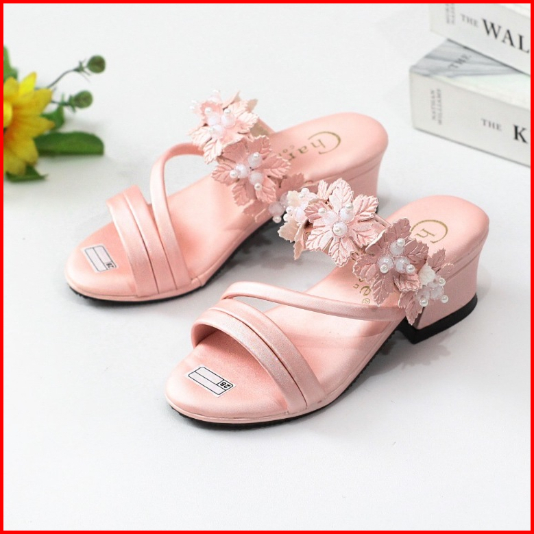 Sandal Pesta Anak Perempuan Hak 3cm Empuk Ringan Motif Tali Mute Sol Anti Slip