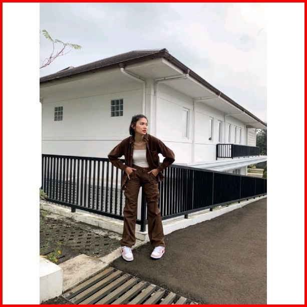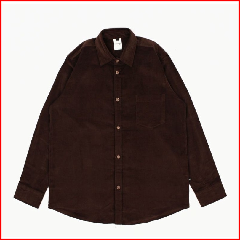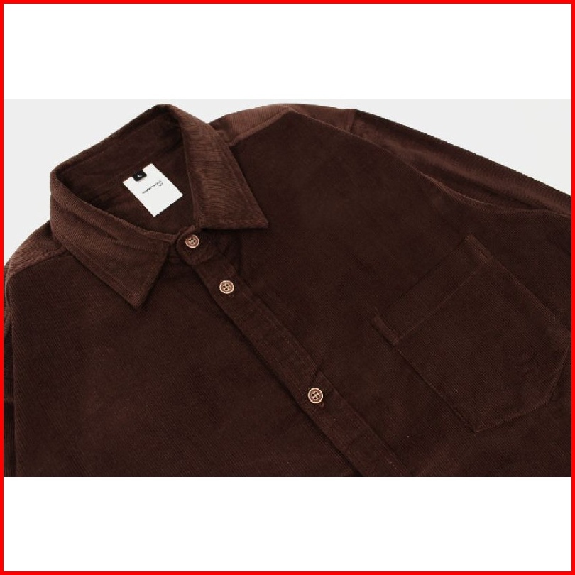 Easternwood Kemeja Corduroy Pria Lengan Panjang Polos Coklat Tua Kopi Brown