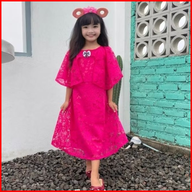 Dress Anak Perempuan Brokat Mewah Usia 212 Tahun Gaun Brukat Elegan Baju Pesta Murah Kekinian