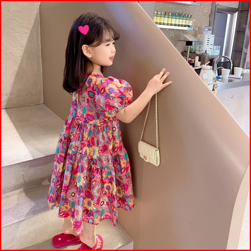 Dadaward 2-7 Tahun Gadis Gaun Bunga Musim Panas Anak-anak Baru Bunga Lengan Pendek Gaun Putri Rok Katun Bayi