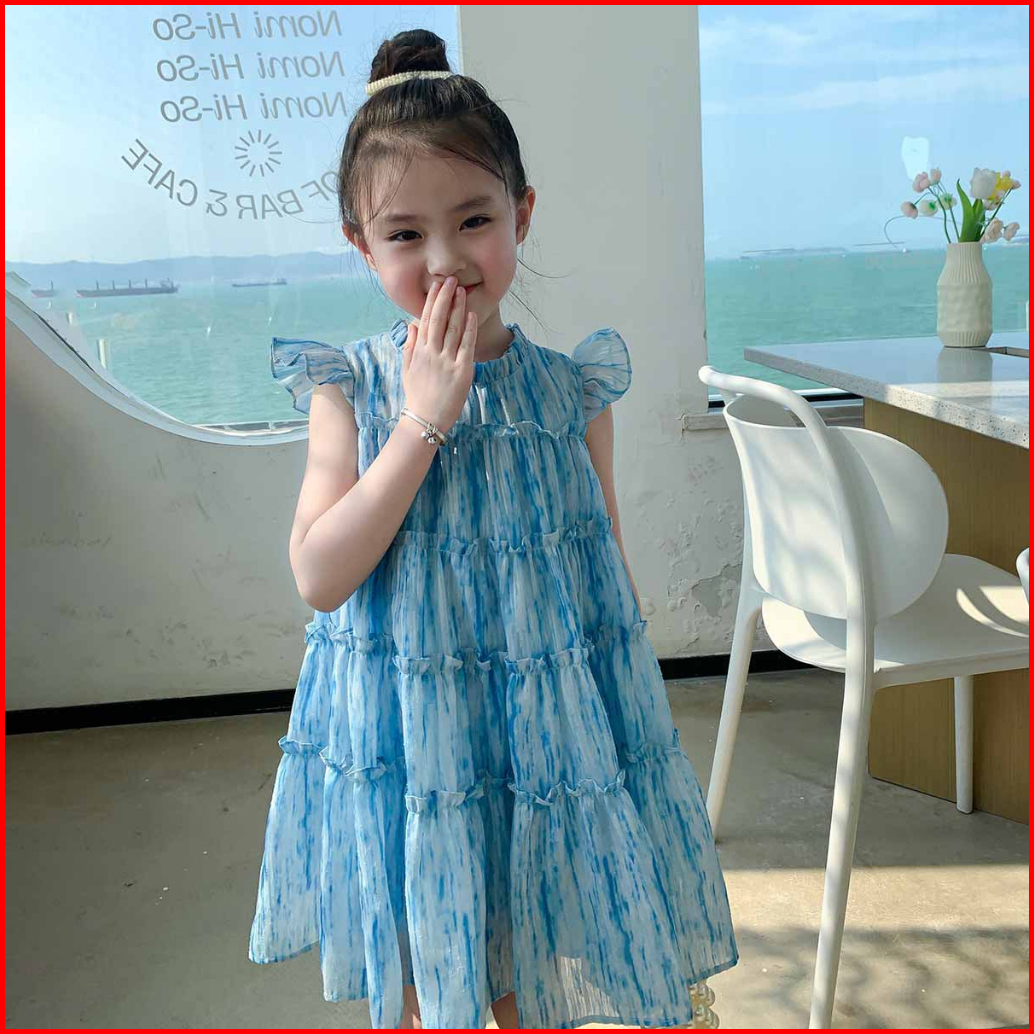 Party Dress Pesta Gaun Anak Mewah Biru Tulle Korea Style Fashion Blue Long Dress