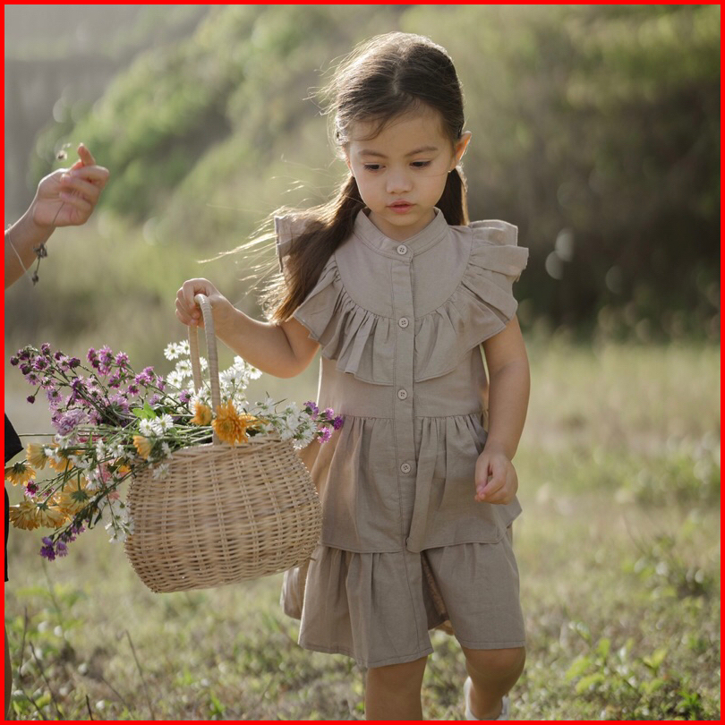 Pocca - Moana Linen Dress Kids Dress Anak Perempuan Ruffle Lucu