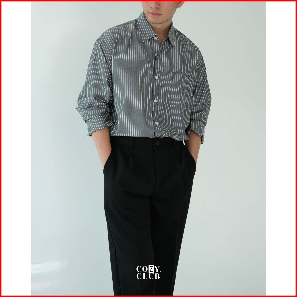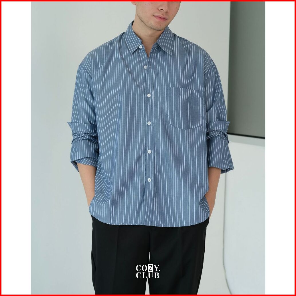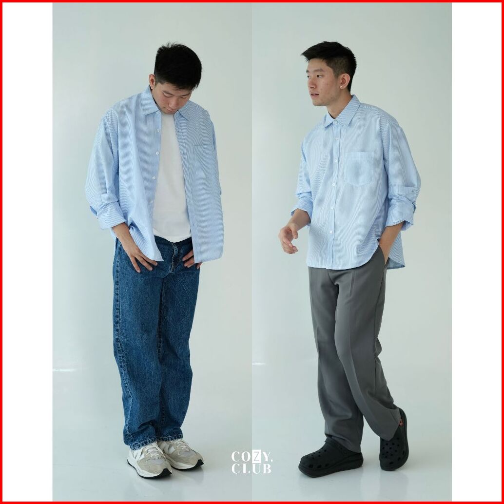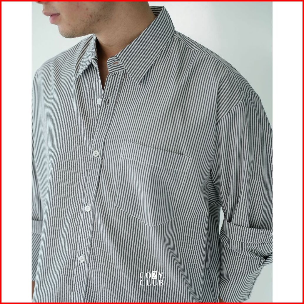 Cozyclub Stripe Oversized Longsleeve Shirt Kemeja Stripe Oversize Pria Lengan Panjang 301