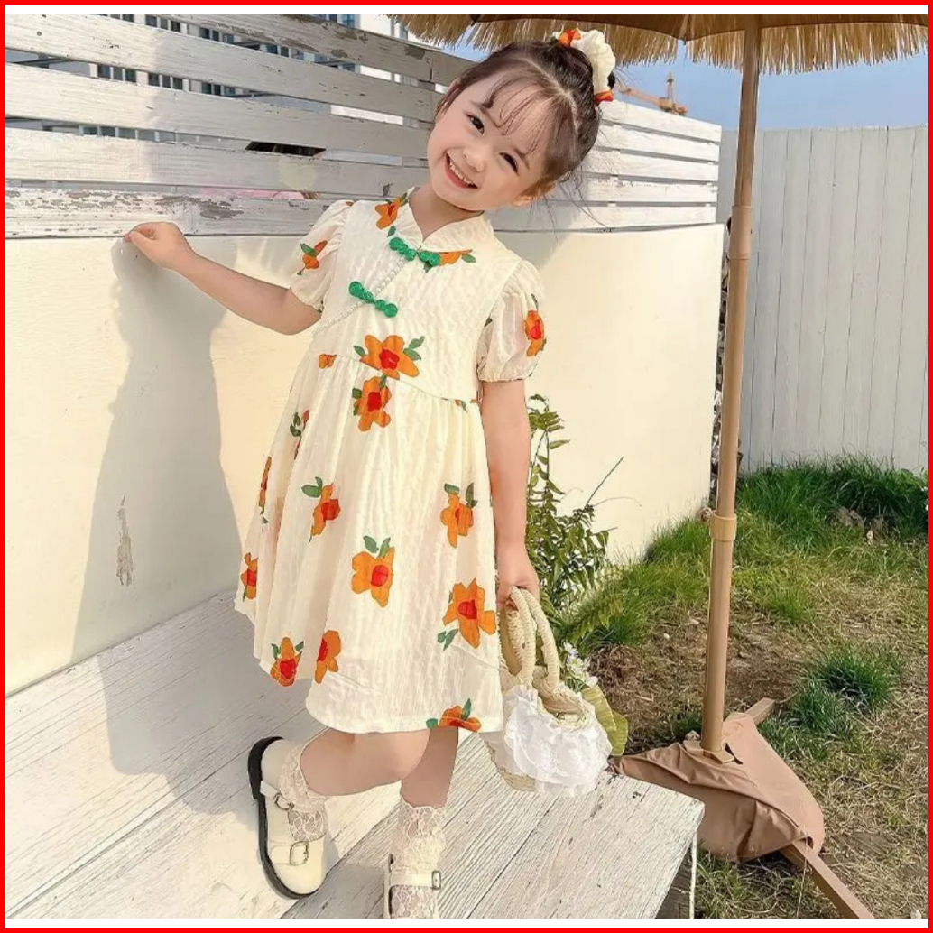 Kidsfashionkoleksi Dress Anak Perempuan Cheonsam Retro Line Shanghai Import