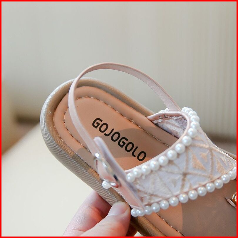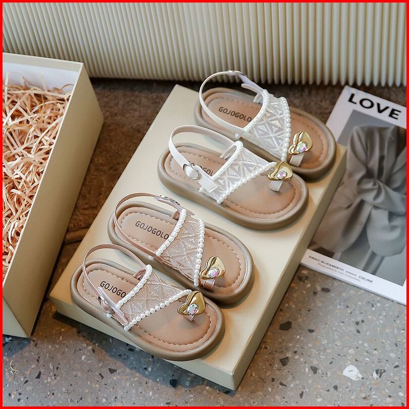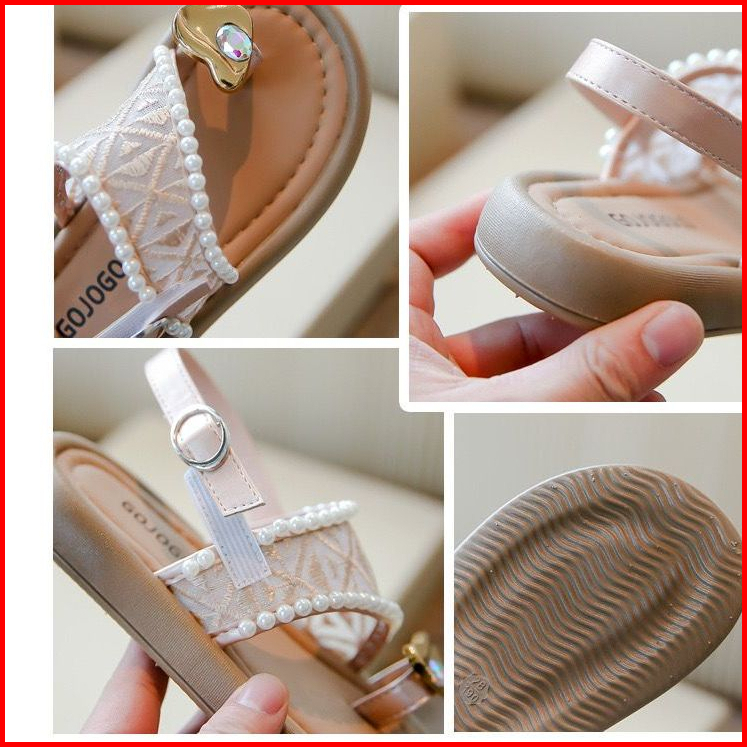 Loli-jkt Sd- Gm2 Sandal Flat Anak Brokat Tranparan Mutiara Tali Perekat Size 26-37
