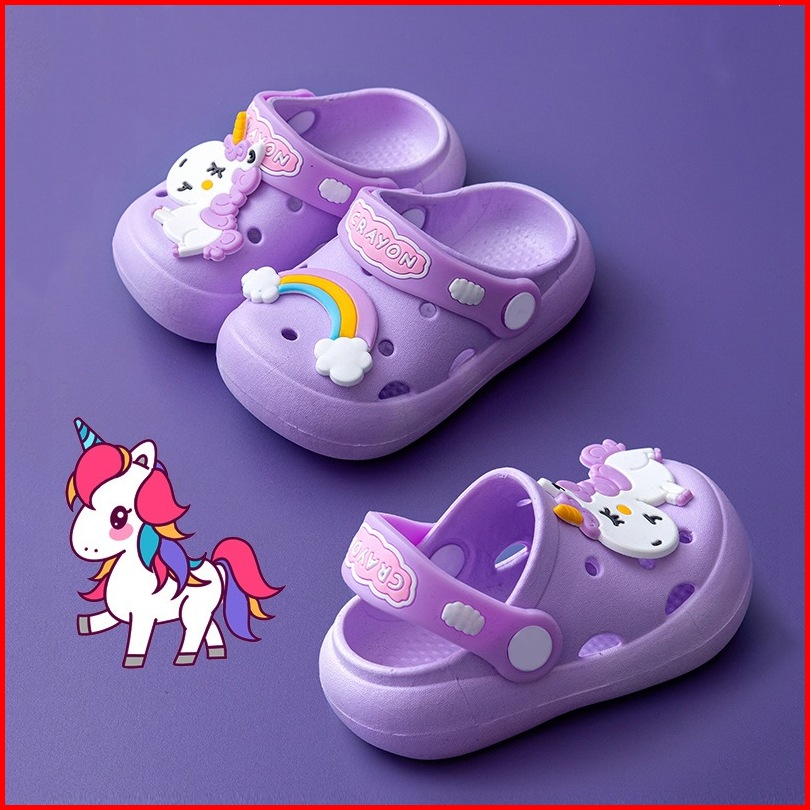 Sandal Anak Baim Perempuan Tali Belakang Import Terbaru Viral Nyaman Ringan Anti Slip Karakter Unicorn