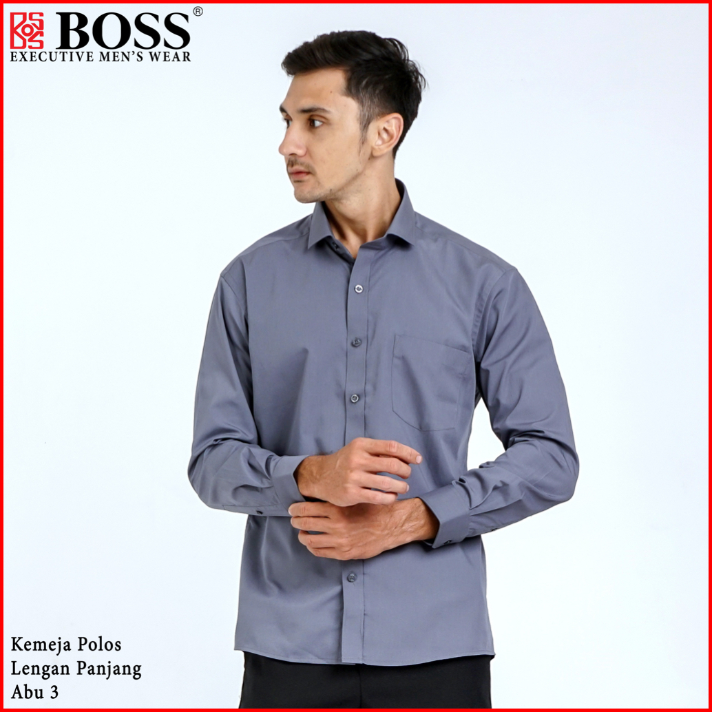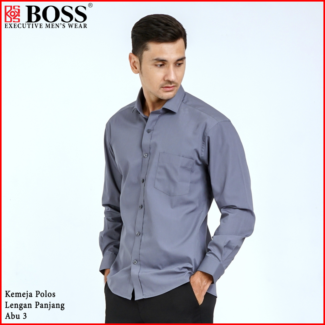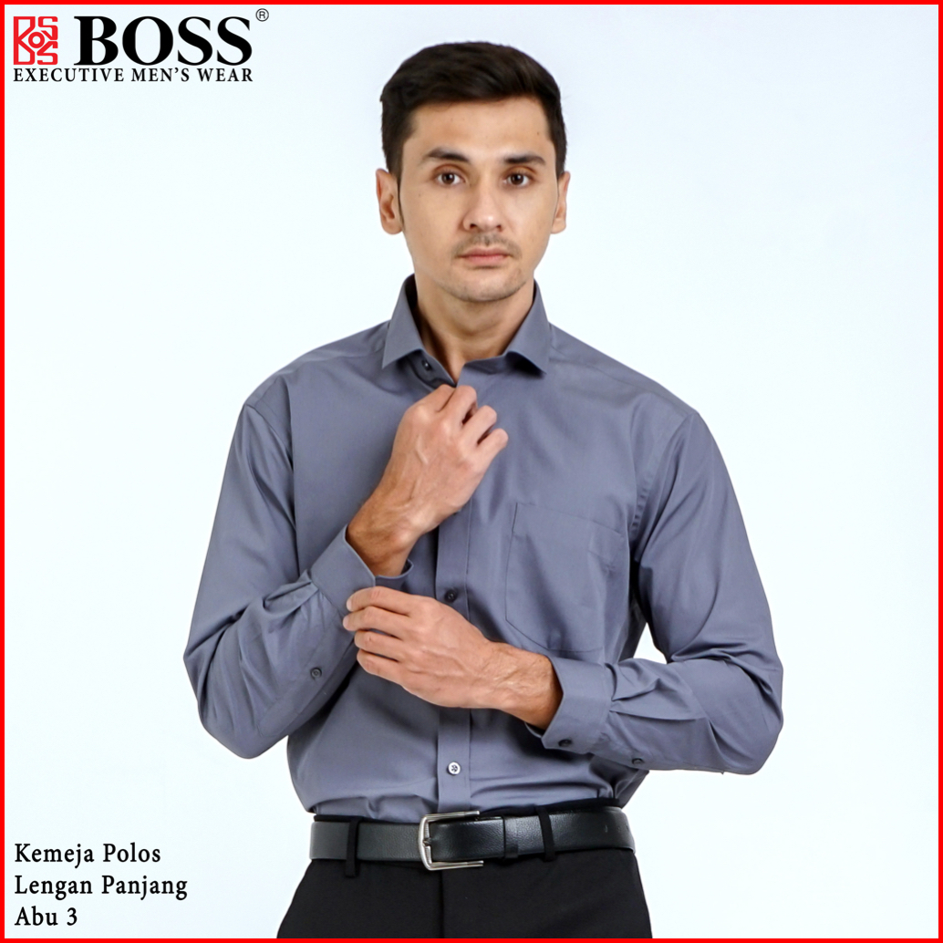 Boss Kemeja Polos Pria Lengan Panjang Slim Fit Abu 3
