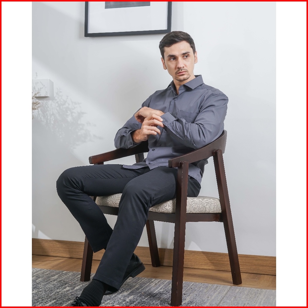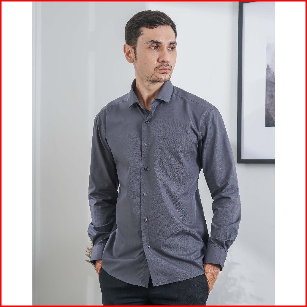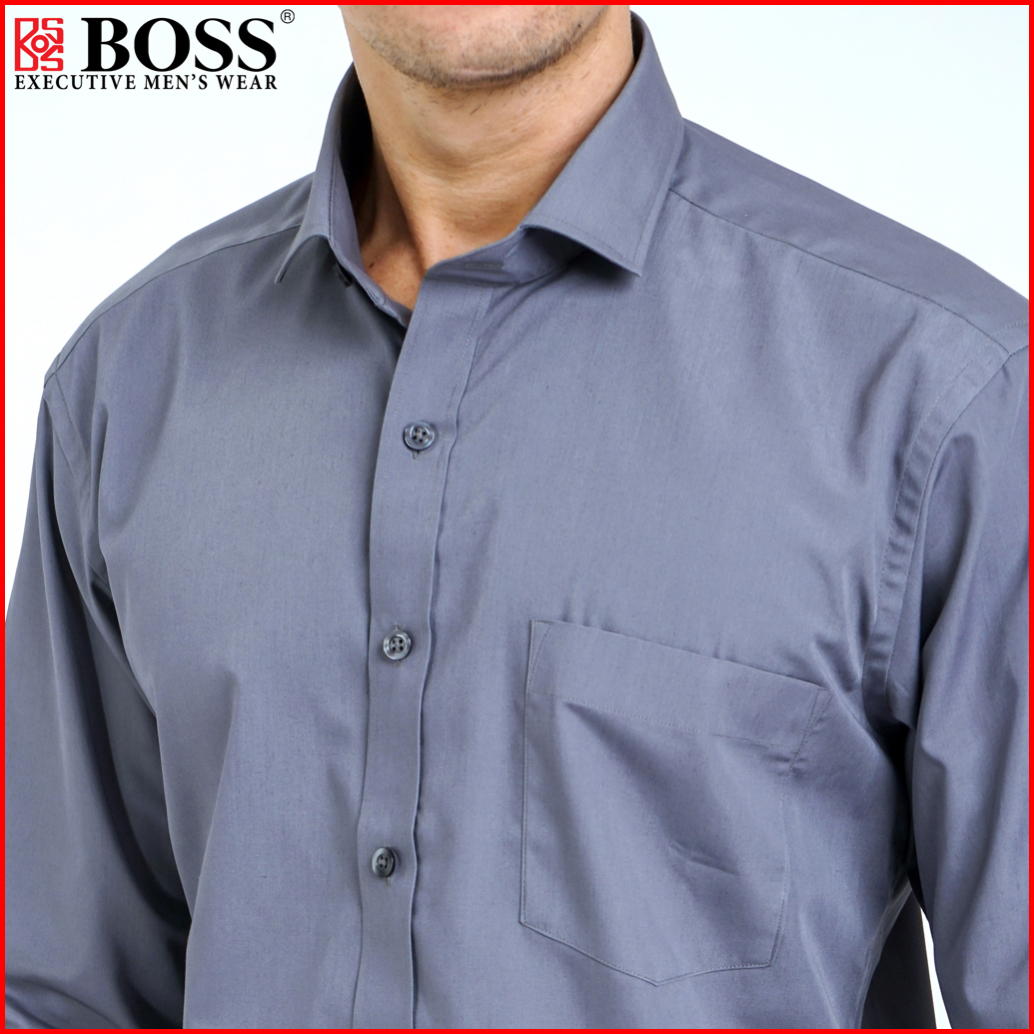 Boss Kemeja Polos Pria Lengan Panjang Slim Fit Abu 3