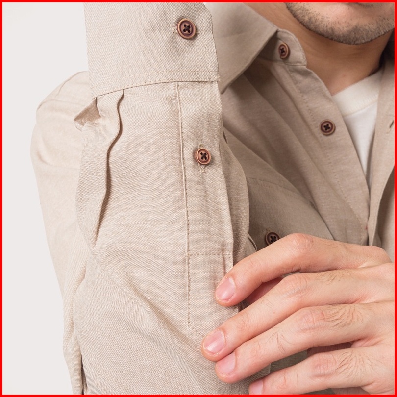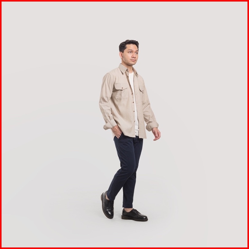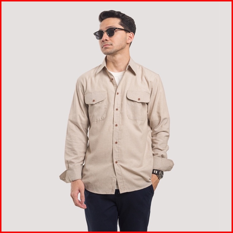 Kemeja Polos Pria Woodcutter Basic Work Shirt Cream Khaky - Double Pocket Kantong 2