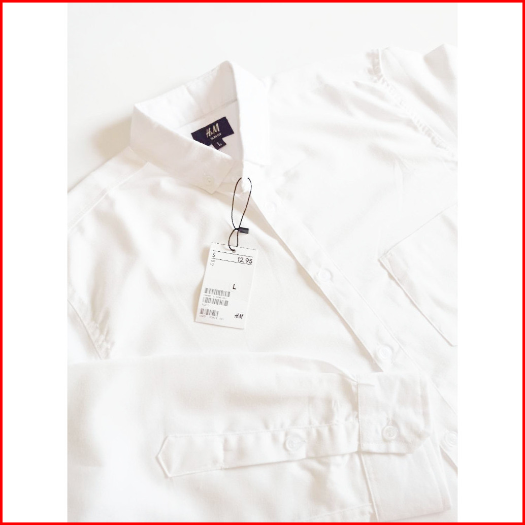 Kemeja Putih Pria Lengan Panjang Pendek Polos Oxford Atasan Pria Hnm Putih