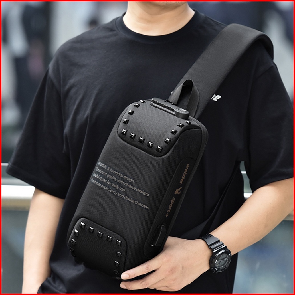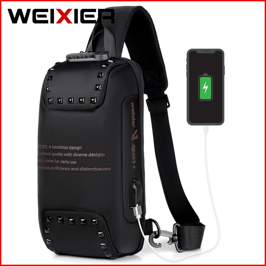 Weixier X308 Tas Selempang Pria Shoulder Bag Anti Maling Usb Port Wx-os