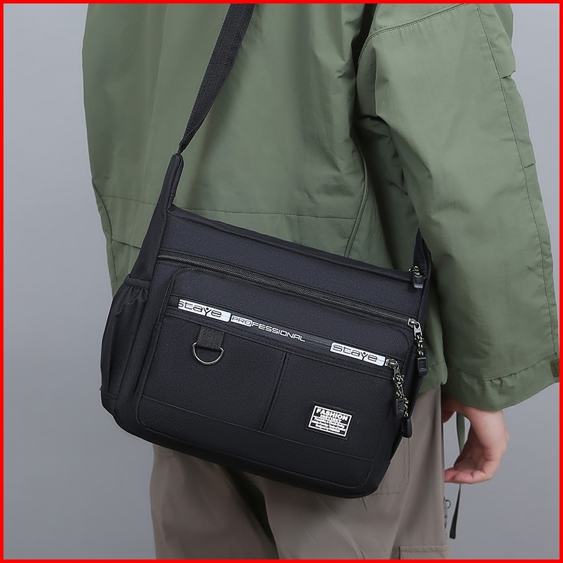 Ht Tas Bahu Kanvas Pria Kasual Multipocket Tas Selempang Impor Fashion Pria