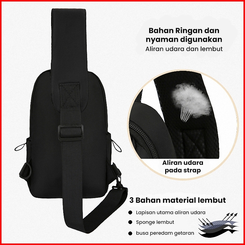 Techdoo Tas Selempang Tas Pria Dada Usb Tas Slempang Sling Bag Tas Bahu Cowok Anti Air Ts708