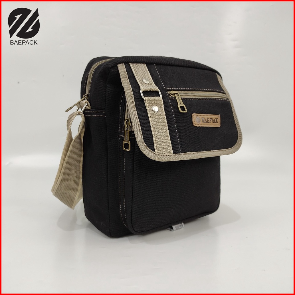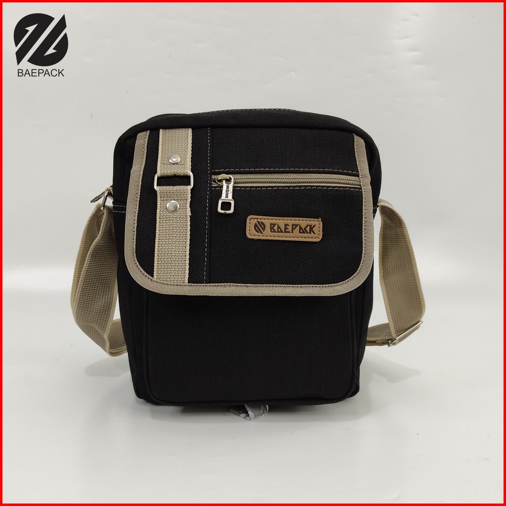 Tas Selempang Kanvas Premium Hanzo Hitam Original Baepack Tas Bahu Pria Dan Wanita Tas Canvas Cowok Cewek Produsen Tas B