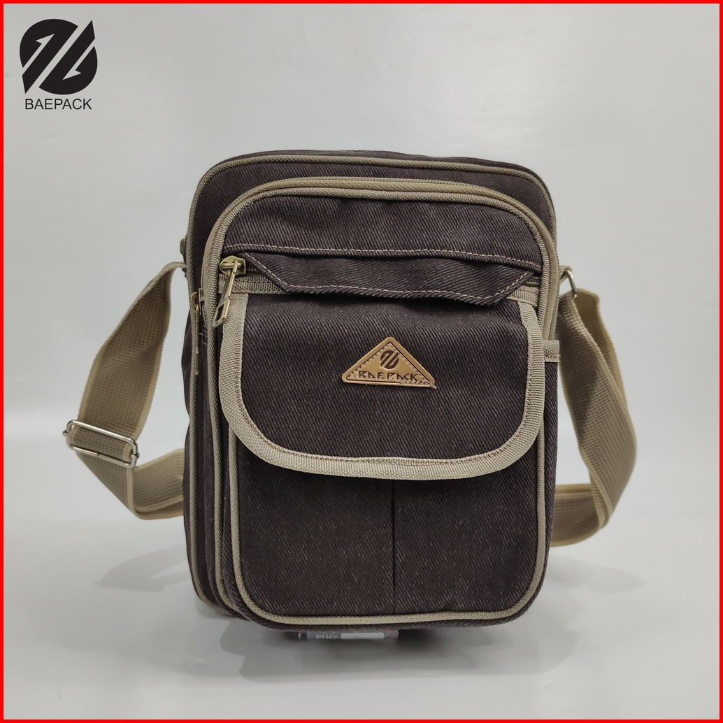 Tas Selempang Kanvas Pria Xenof Cokelat Tua Original Baepack Tas Bahu Canvas Cowok Tas Selempang Premium Produsen Bandun