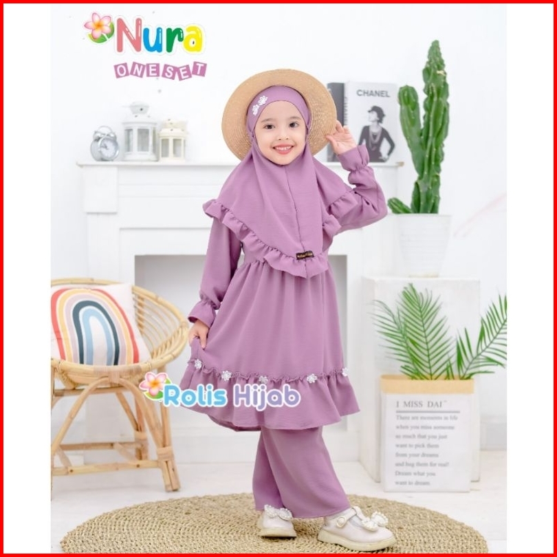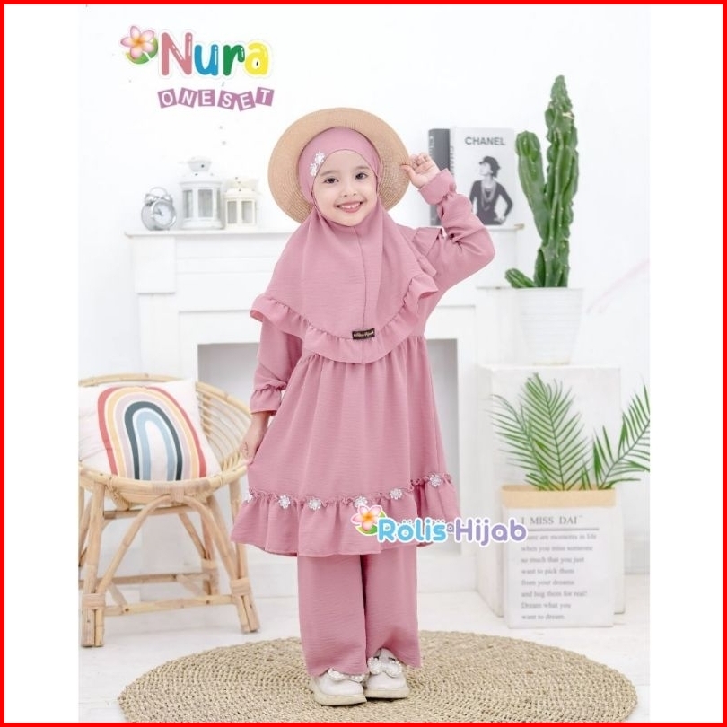 Rolis Hijab Nura One Set Setelan Anak Perempuan Baju Anak Perempuan Gamis Anak Gamis Muslim Anak
