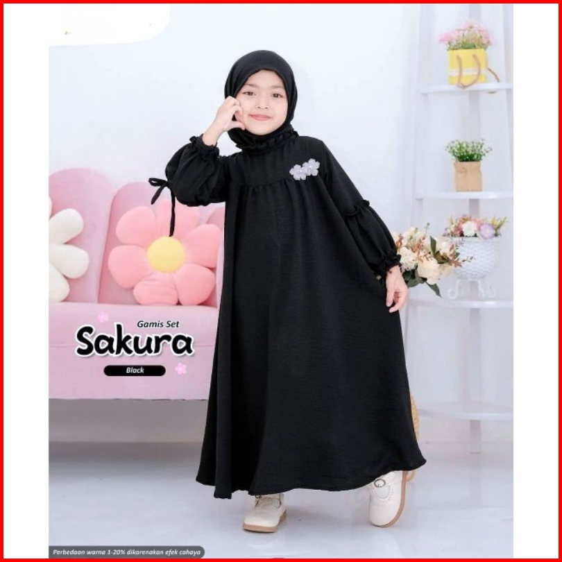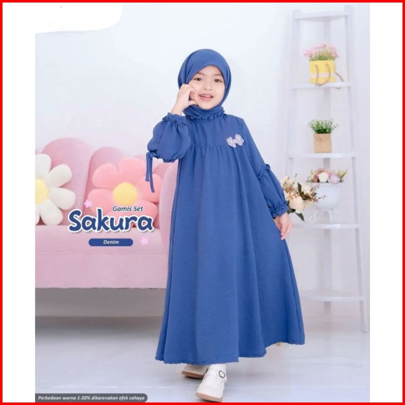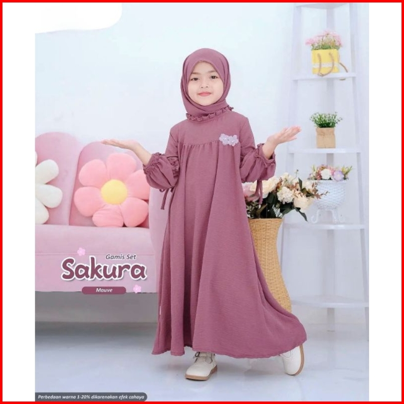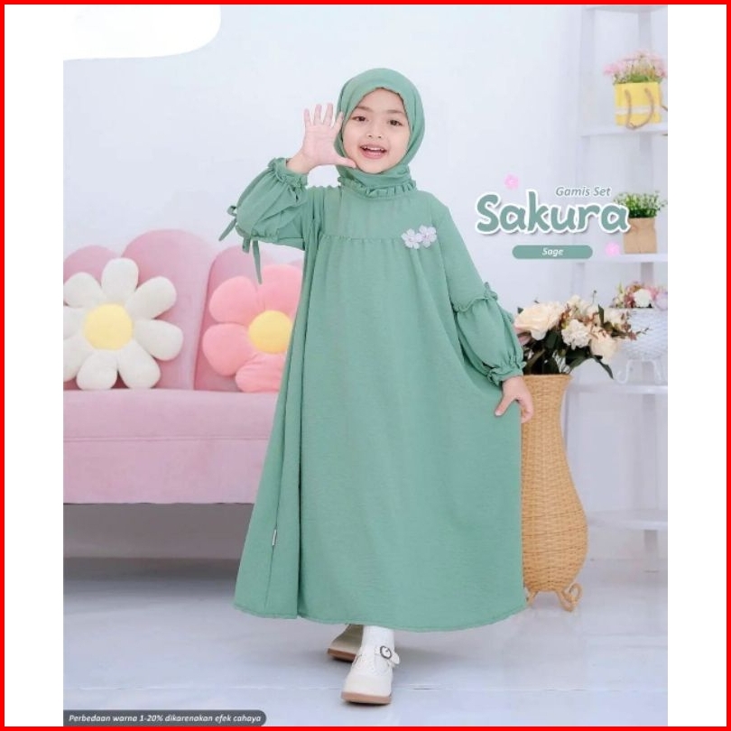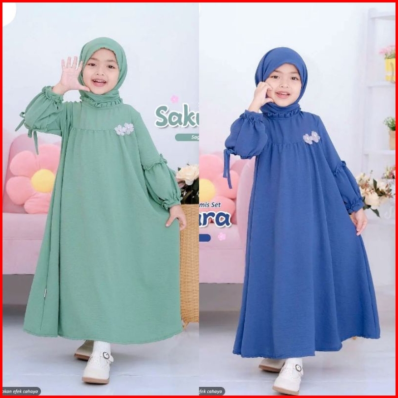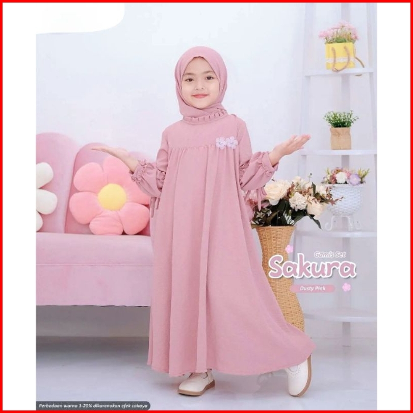 Sakura Set Kids Free Khimar Usia 2-10 Thn Uk M L Xl Bahan Crinkel Airflow Gamis Terbaru Gamis Anak Perempuan Gamis Lebar