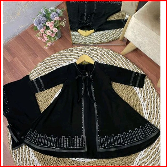 Abaya Gamis Saudi Hitam Anak Kids 1-12 Th Bahan Jetblack Set Hijab