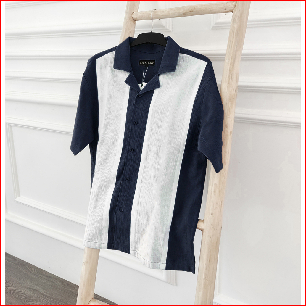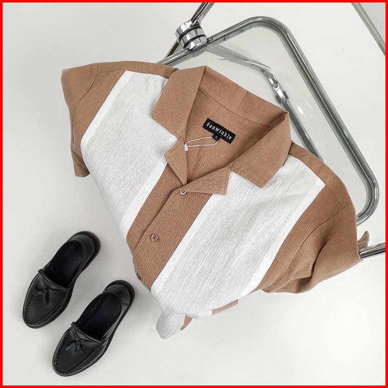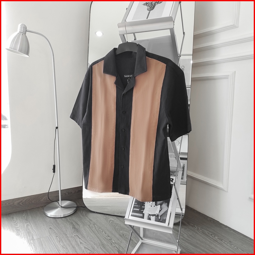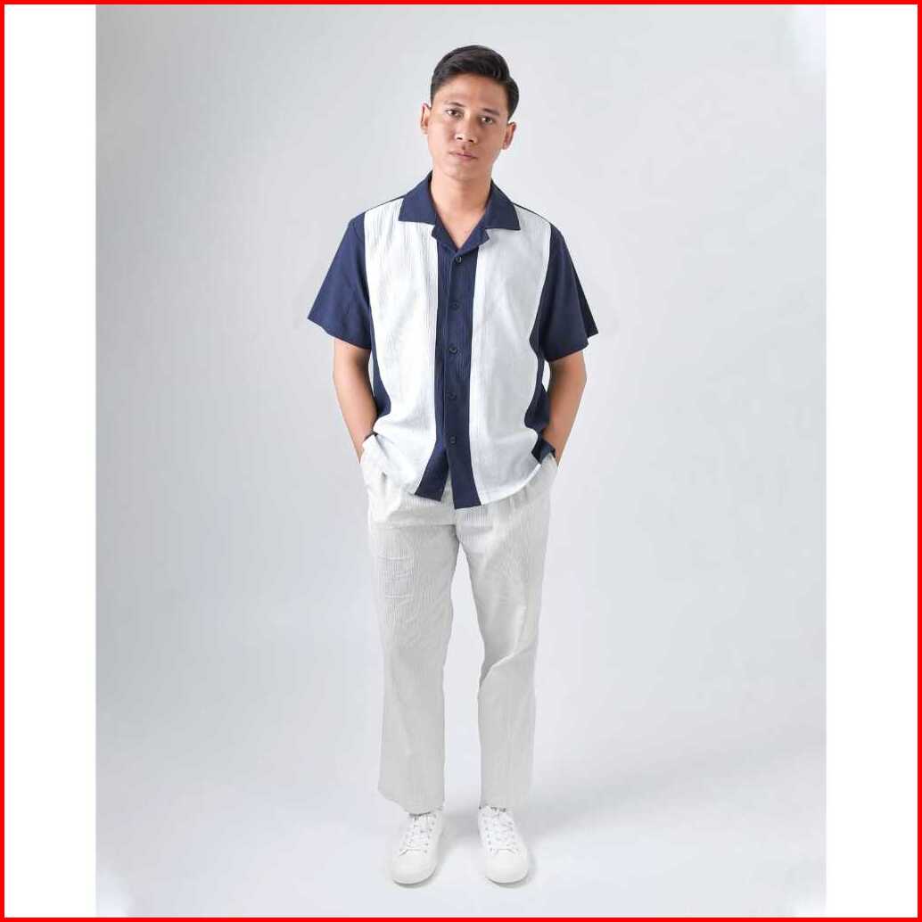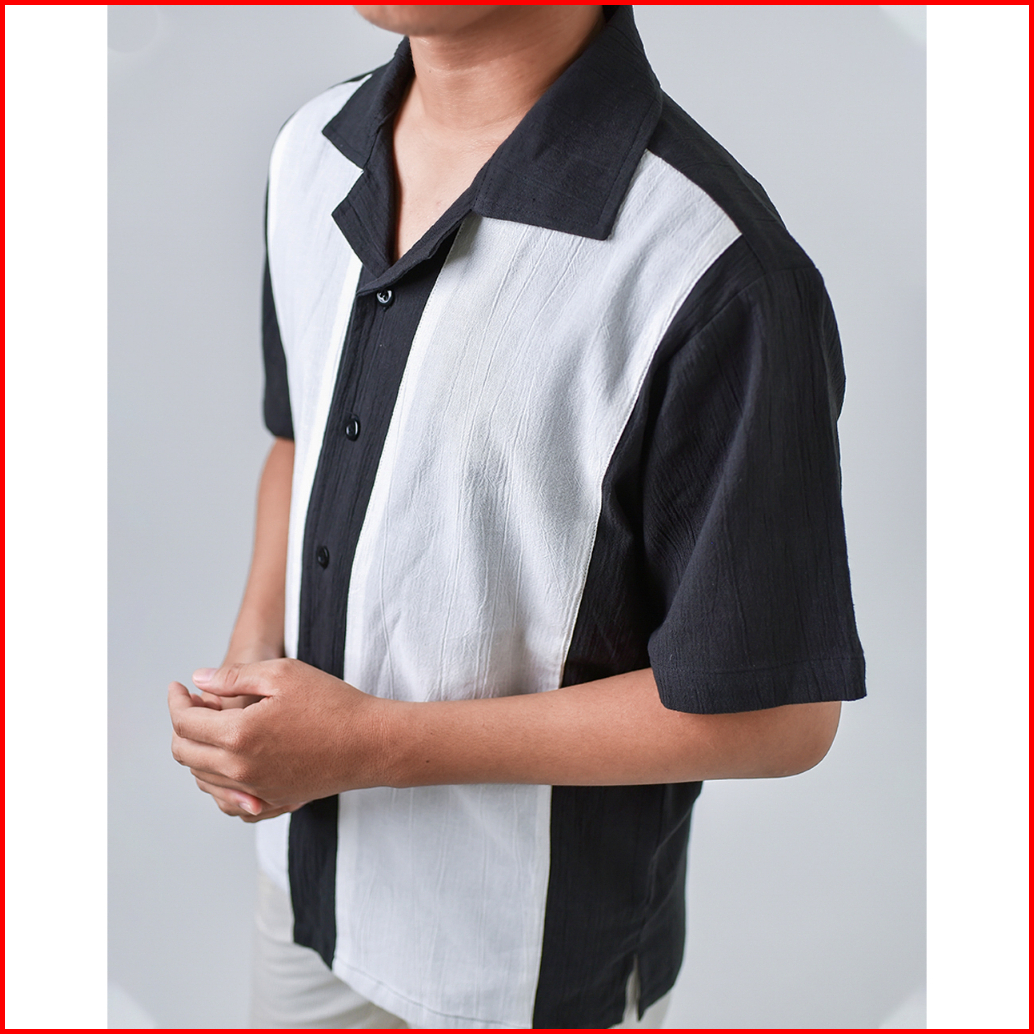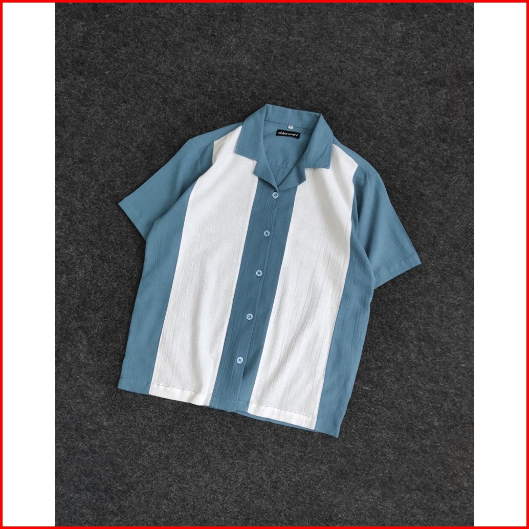 Kemeja Linen Pria Lengan Pendek Kombinasi Vintage - Bowling Shirt Mirkel Vanwinkle