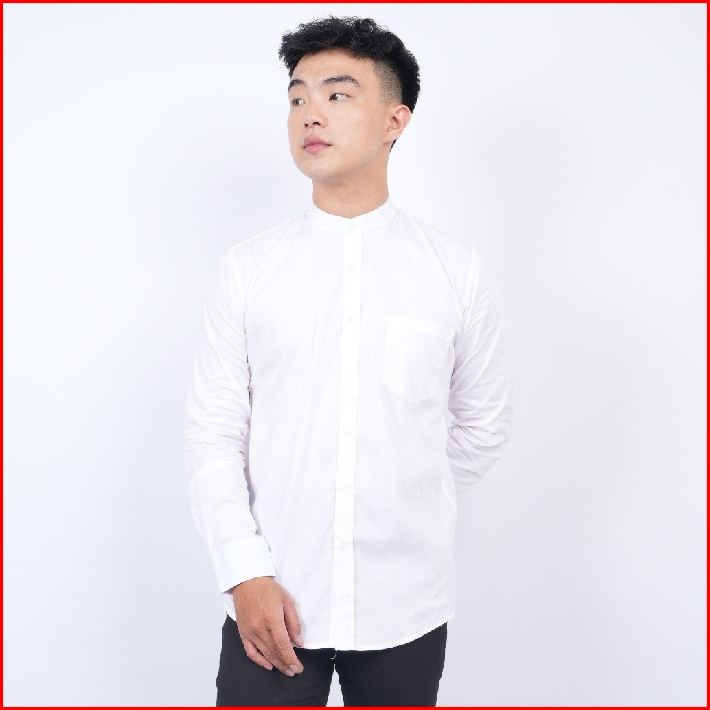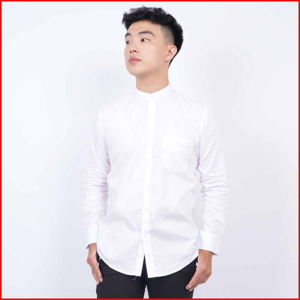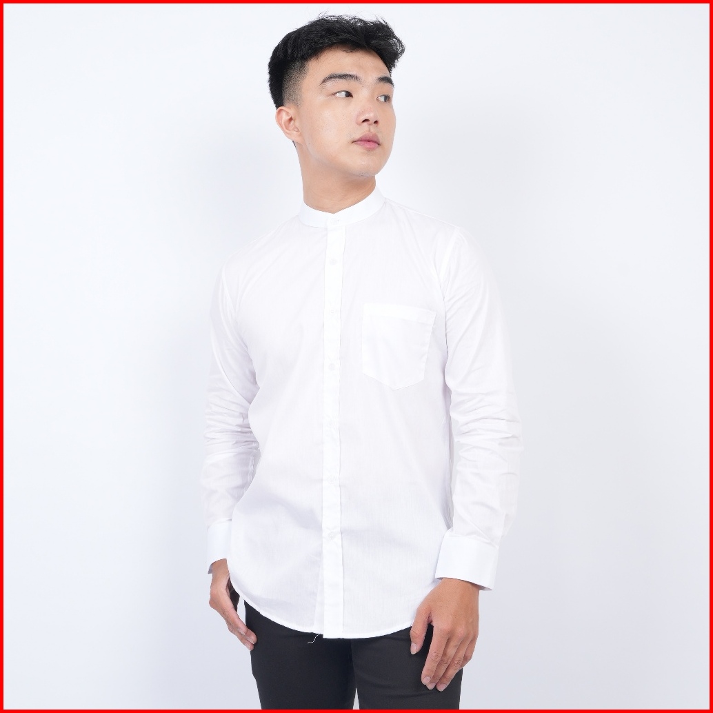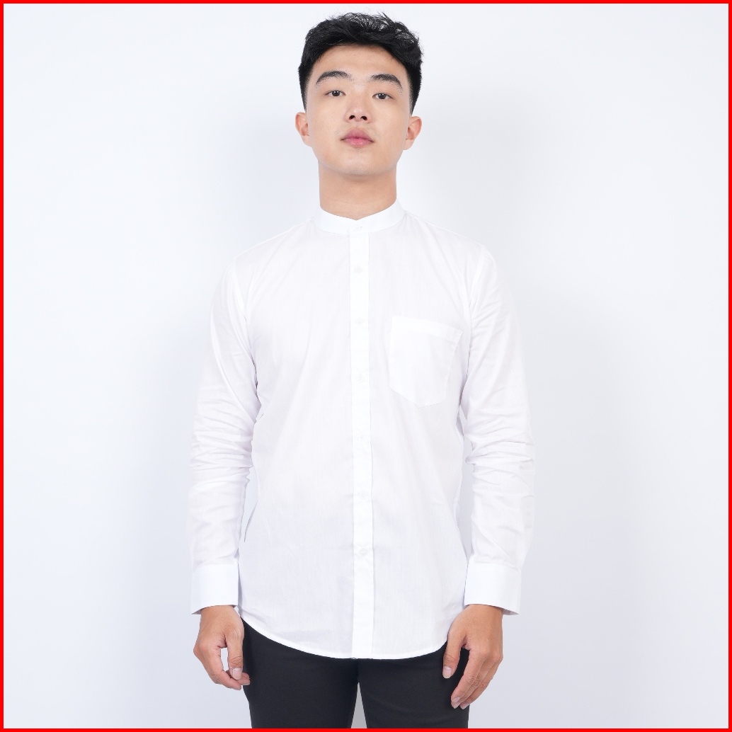 Kemeja Pria Lengan Panjang Polos Kerah Shanghai Koko Putih Hitam Navy Maroon Slimfit 3345
