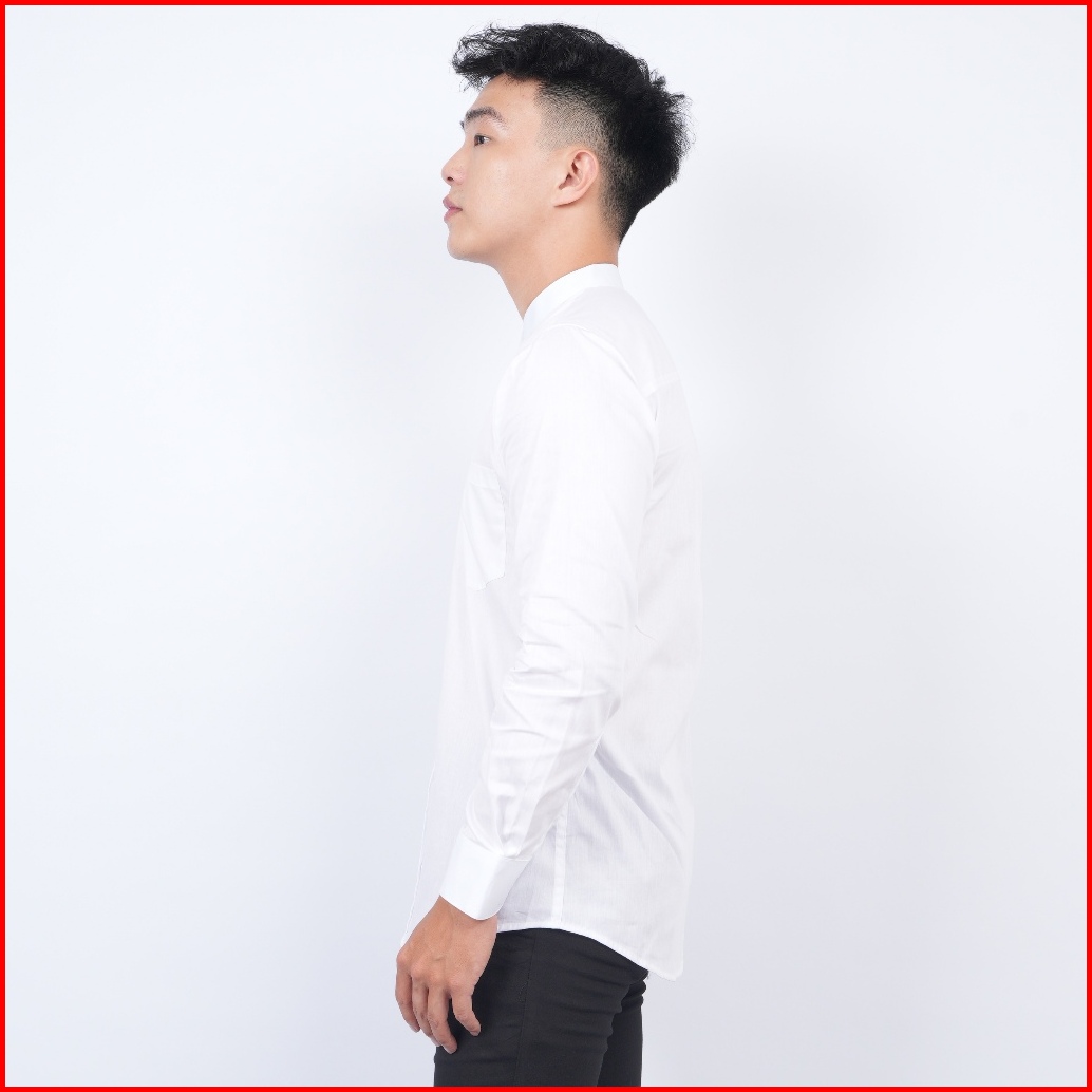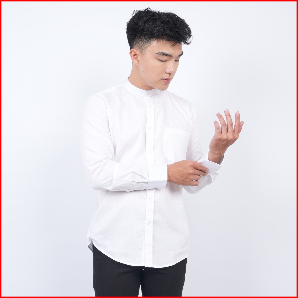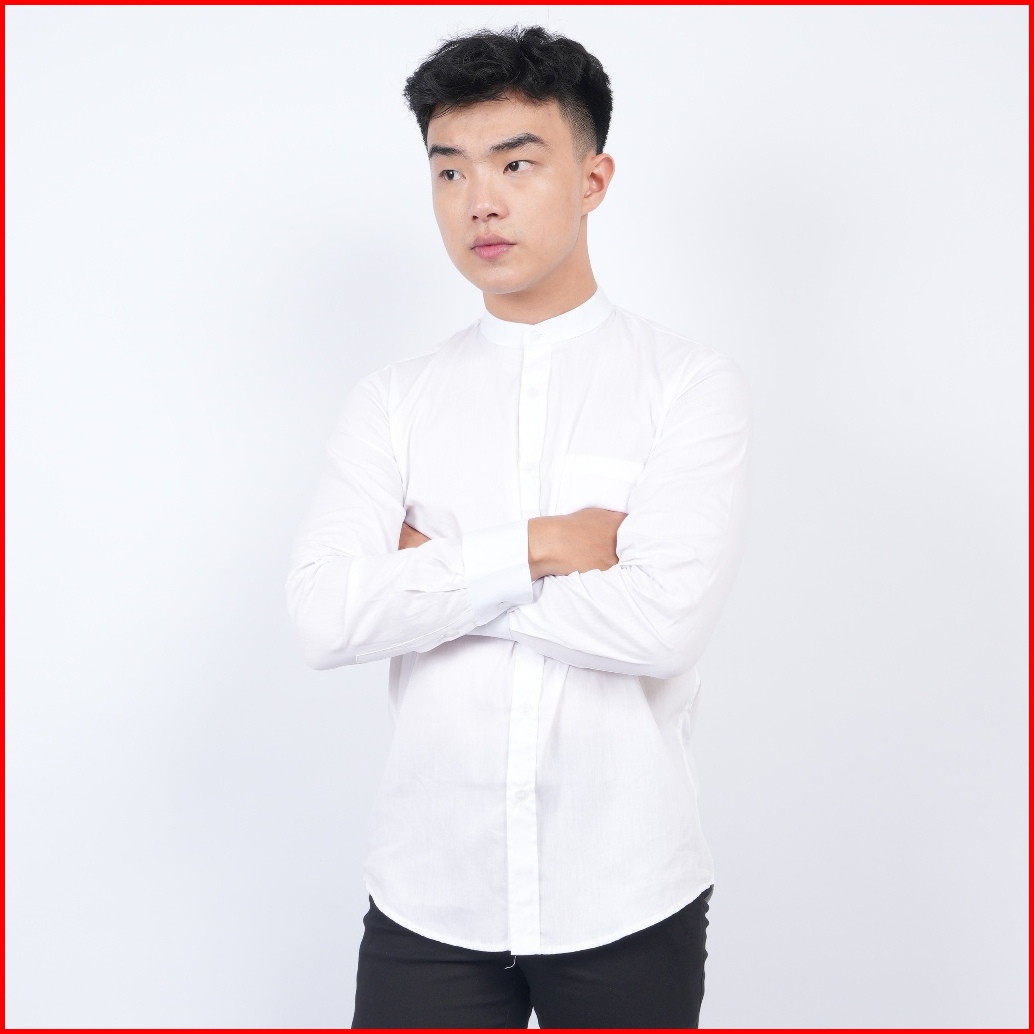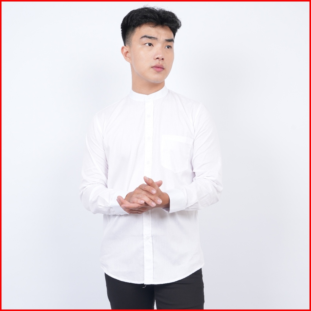 Kemeja Pria Lengan Panjang Polos Kerah Shanghai Koko Putih Hitam Navy Maroon Slimfit 3345