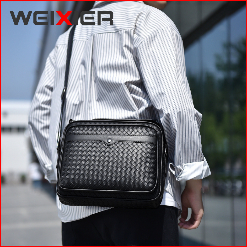 Weixier D281 2 Tas Selempang Pria Kulit Anyaman Sling Bag Premium Anti Air Wx-os