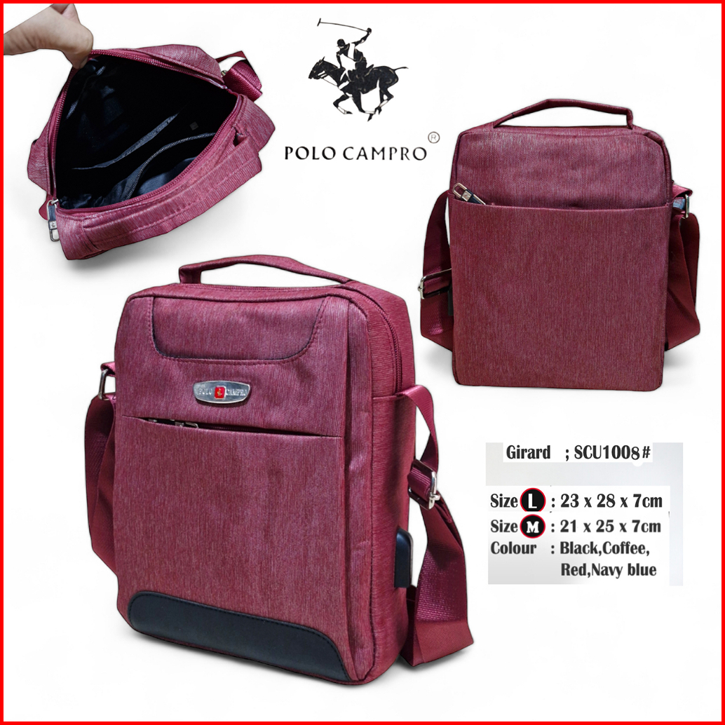 Polo Campro Tas Selempang Tebal Import Slingbag Pria Ukuran L Dan M Dengan Port Usb