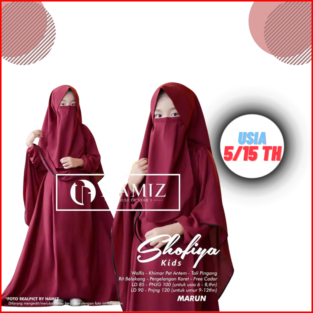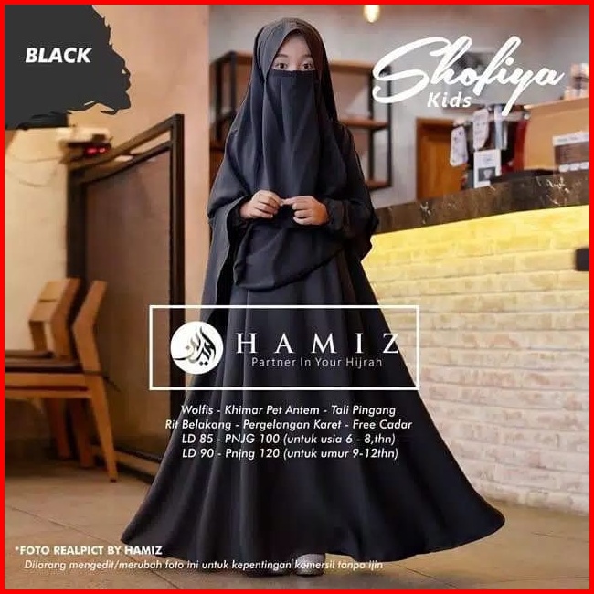 Gamis Muslim Anak Perempuan Umur 7 - 15 Tahun Terbaru Baju Anak Muslim Set Hijab Dan Cadar Gamis Bercadar Anak Pakaian A