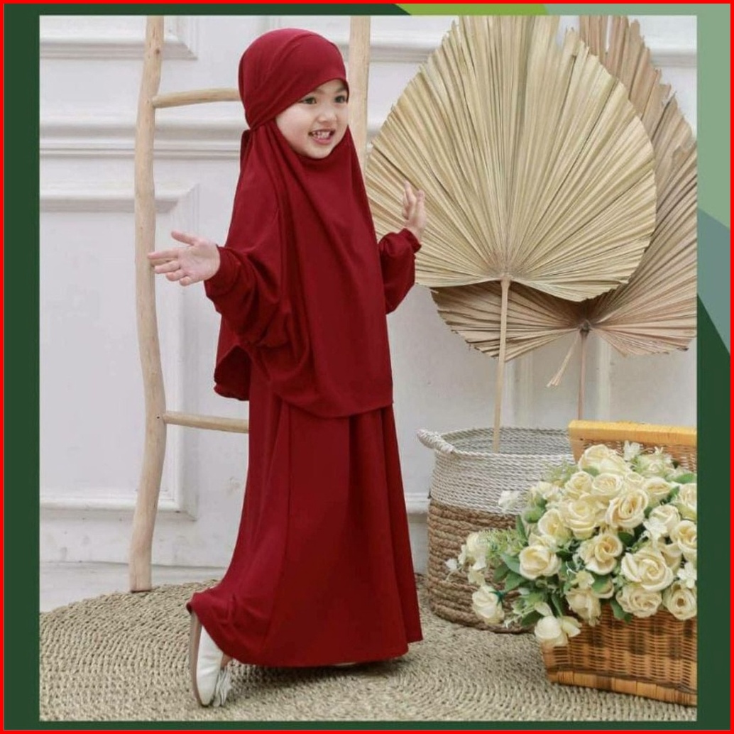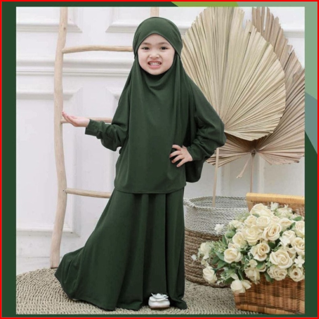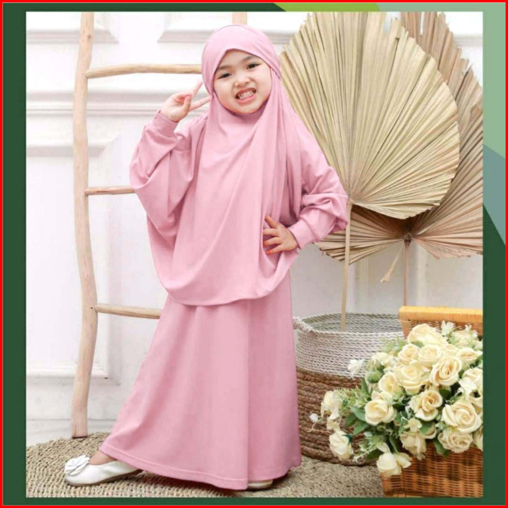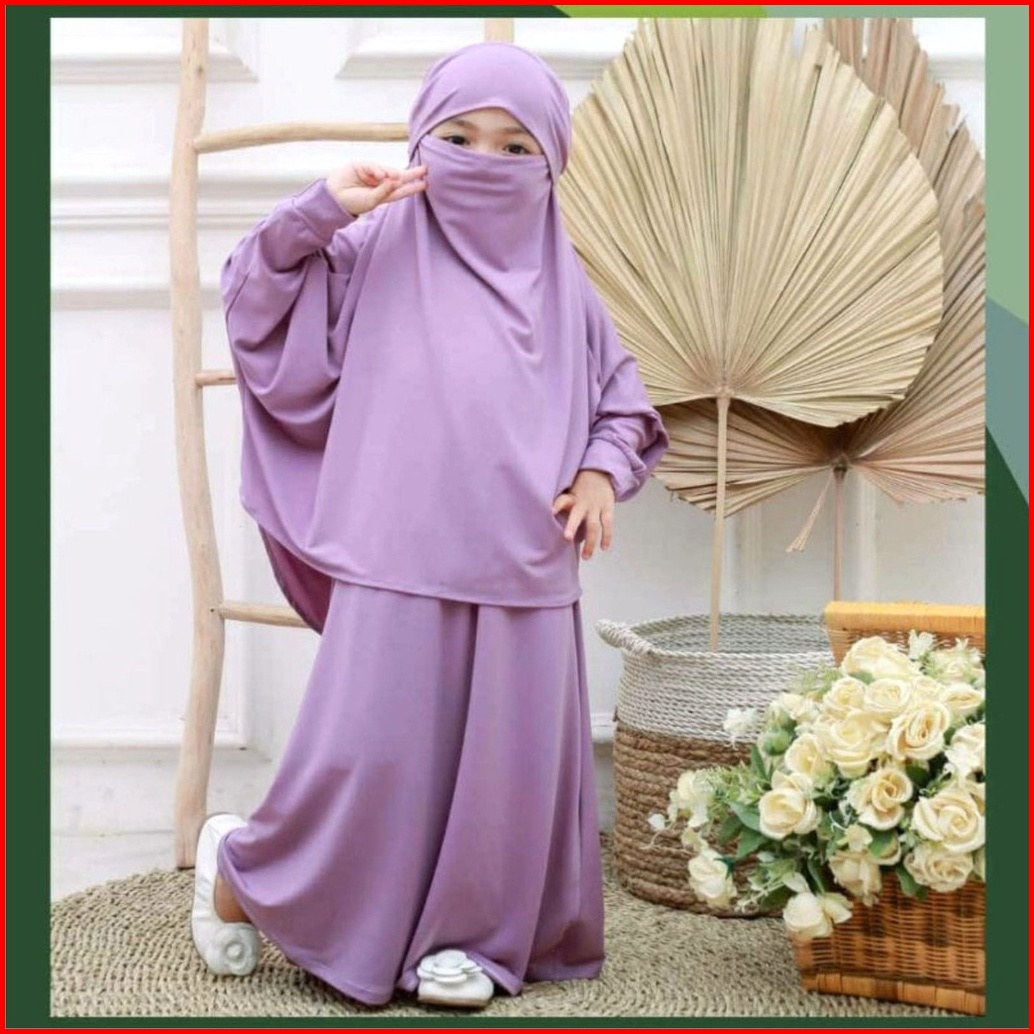 Aisyah Kids Gamis Anak Perempuan Set Hijab French Khimar Usia 3-10 Tahun