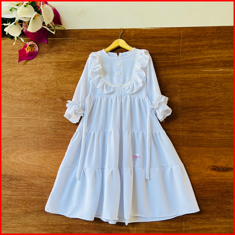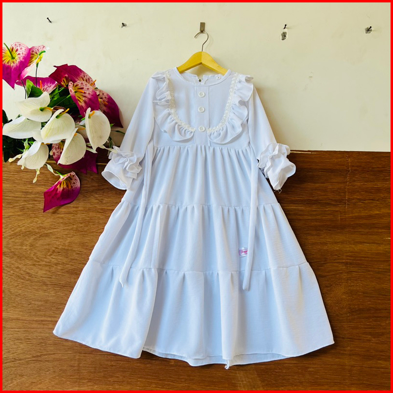 Gamis Anak 4 5 6 7 8 9 10 11 12 13 14 15 Tahun Tanggung Anak Cewek Perempuan Gamis Putih Tumpuk Muslim Manasik Haji Tali