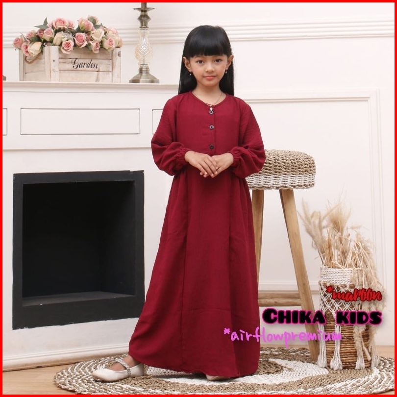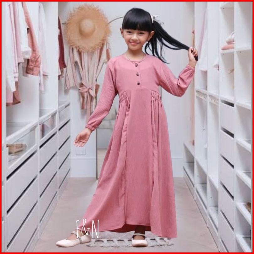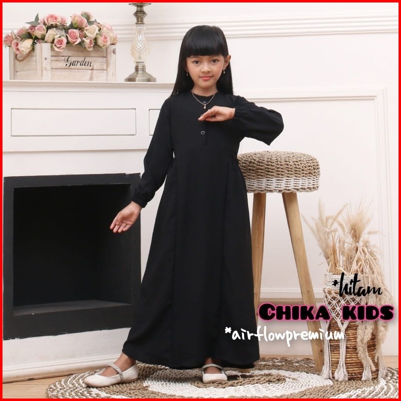 Gamis Polos Anak Usia 3-15 Tahun Terbaru Cika Dress Premium Baju Muslim Anak Hitam Putih Polos