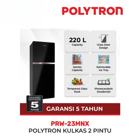 Kulkas POLYTRON 2 Pintu PRW 23 MN Belezza JUMBO Pintu Kaca 220 Liter GARANSI RESMI ORIGINAL