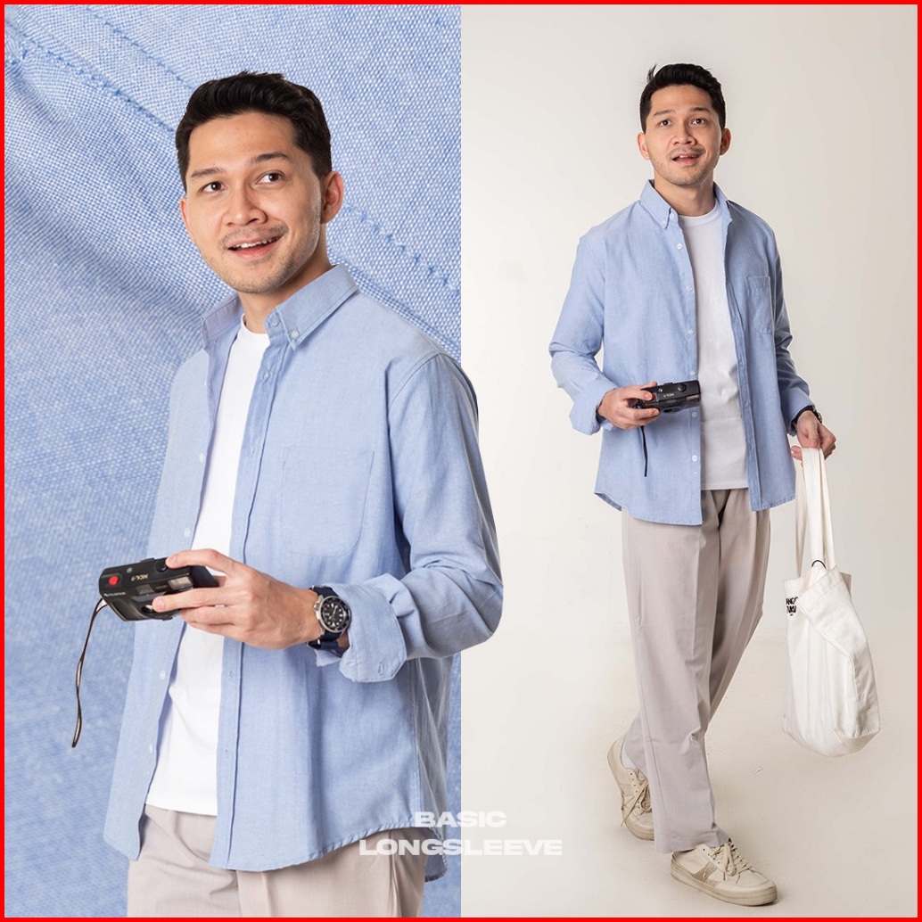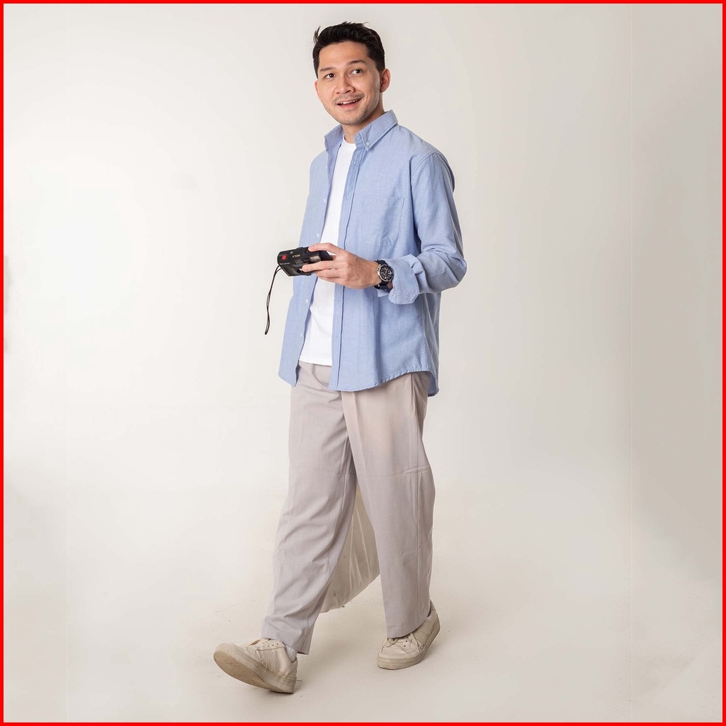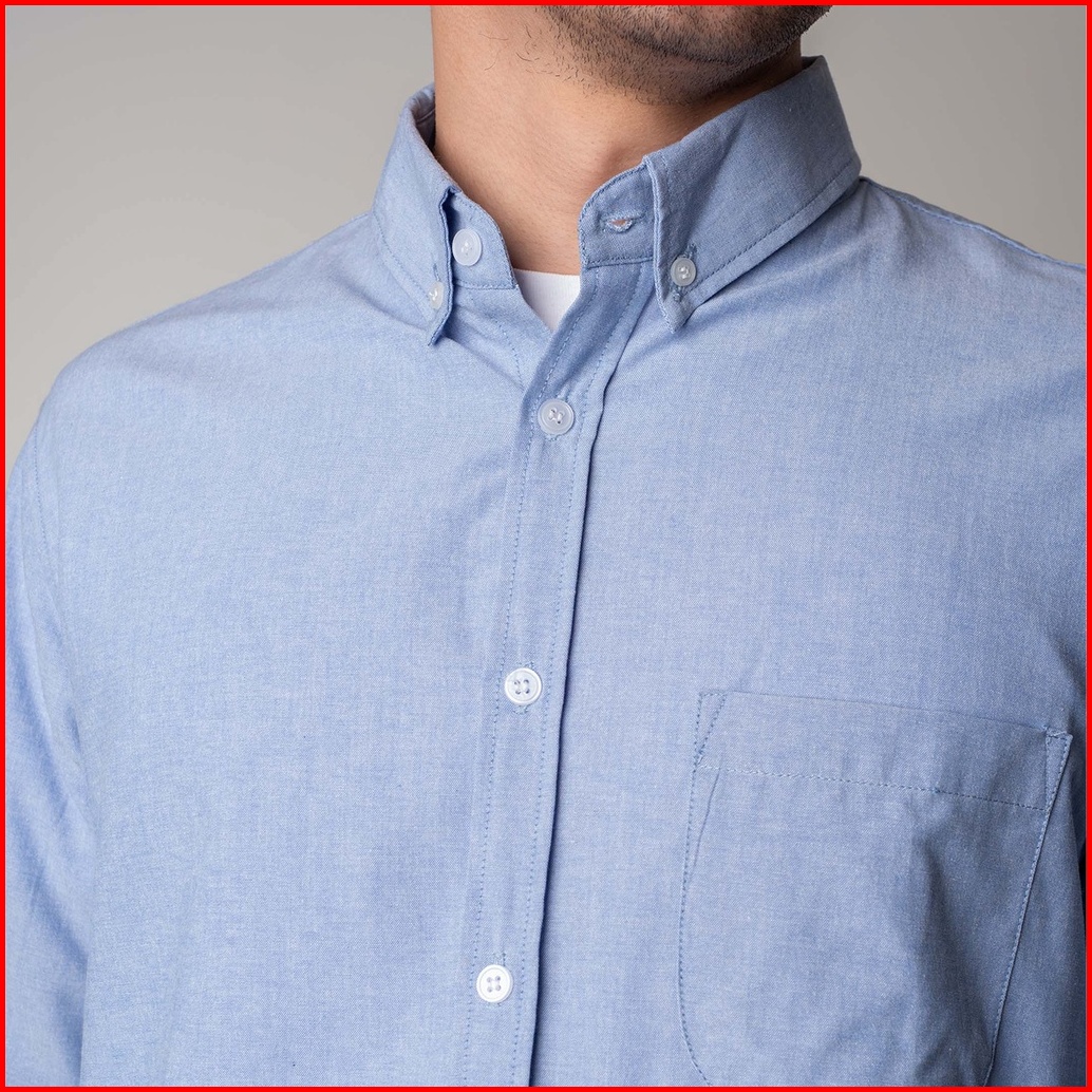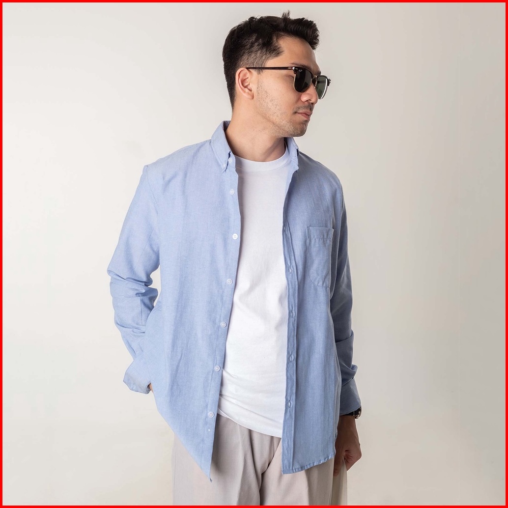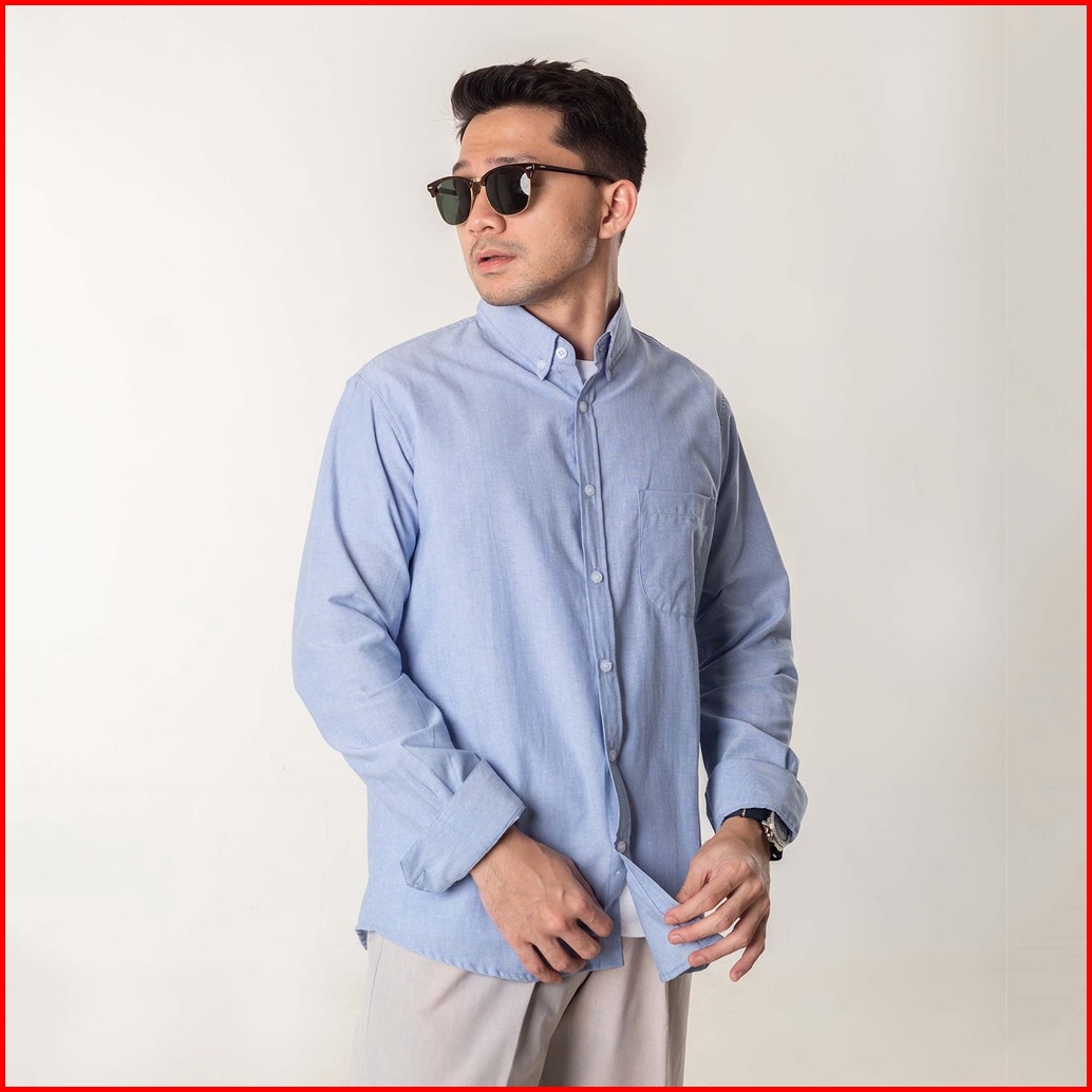 Kemeja Polos Pria Oxford Woodcutter Basic Shirt - Light Blue Longsleeve Lengan Panjang